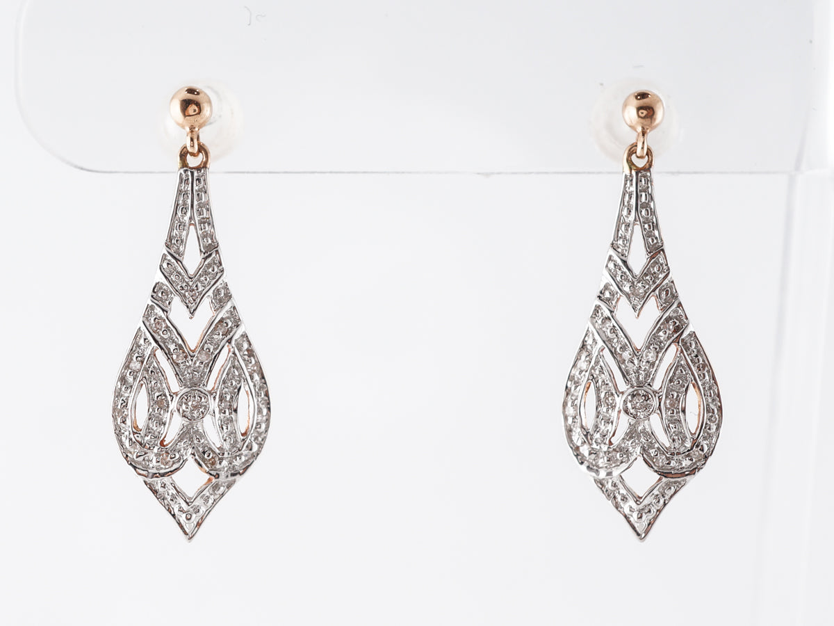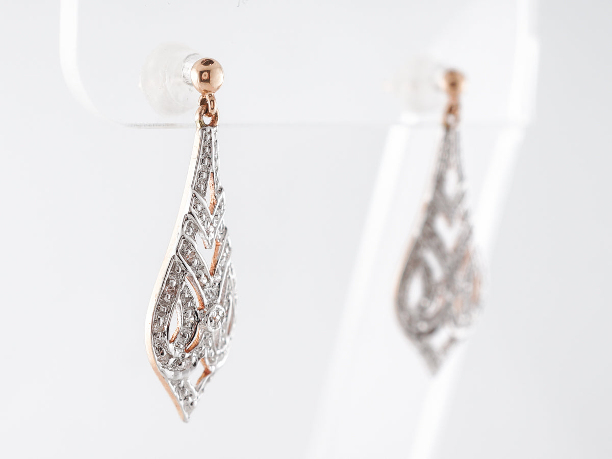 1930's Style Diamond Earrings in 14k White & Rose Gold
