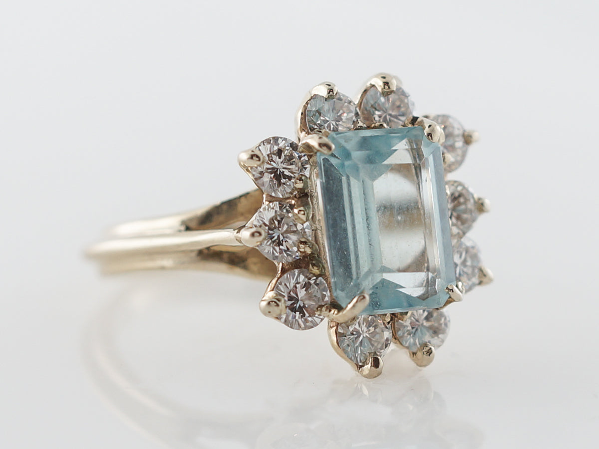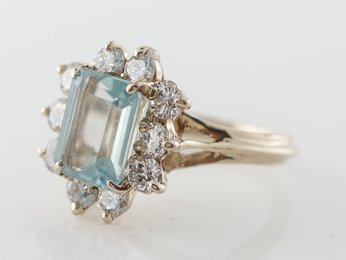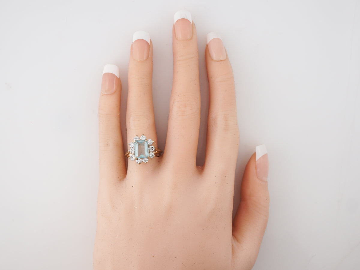 1950's Aquamarine & Diamond Cocktail Ring in Yellow Gold