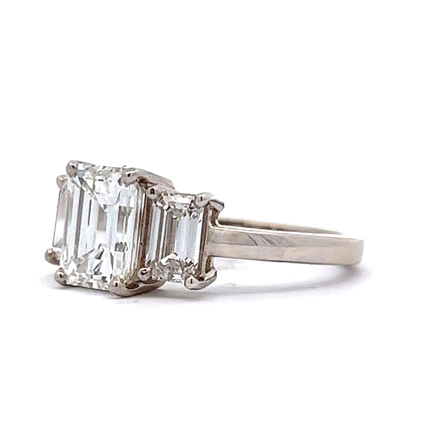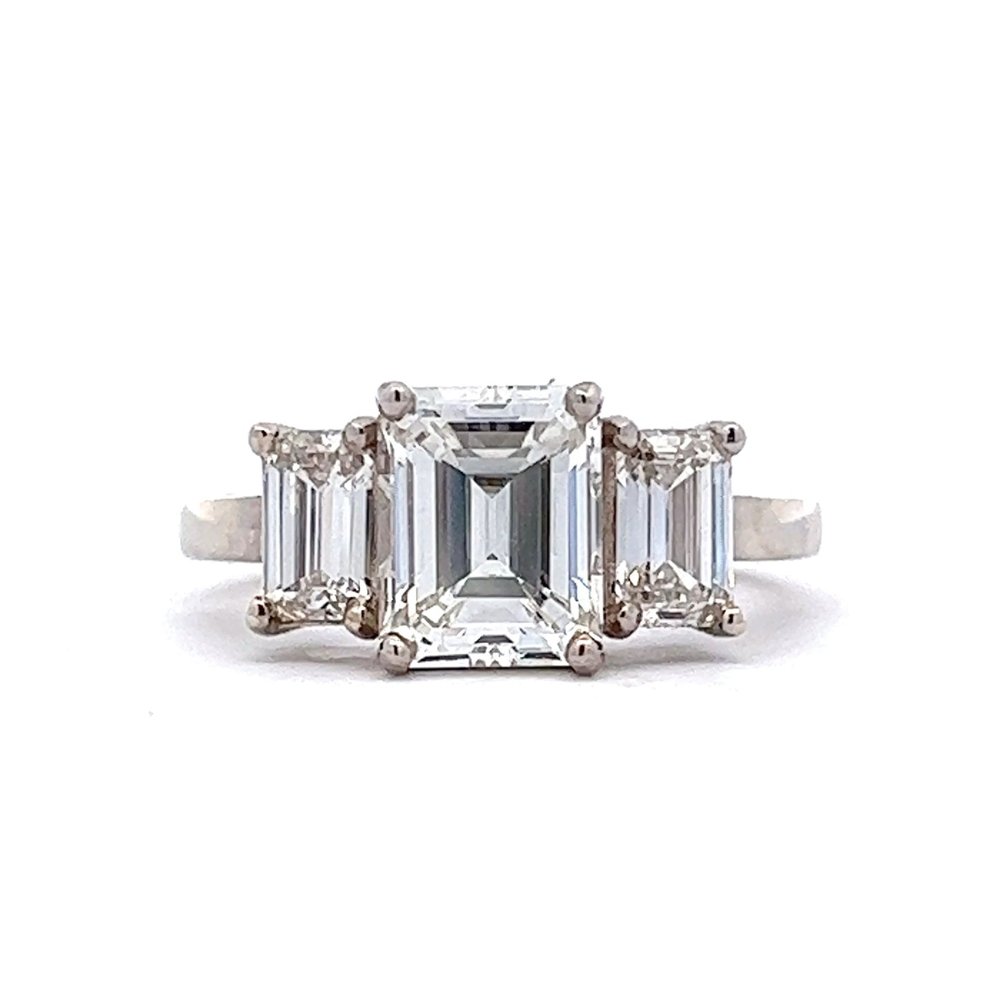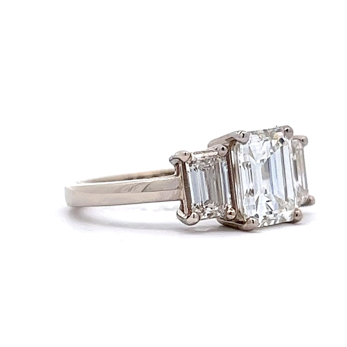 2.02 Emerald Cut Diamond Three Stone Engagement Ring in 18k White Gold