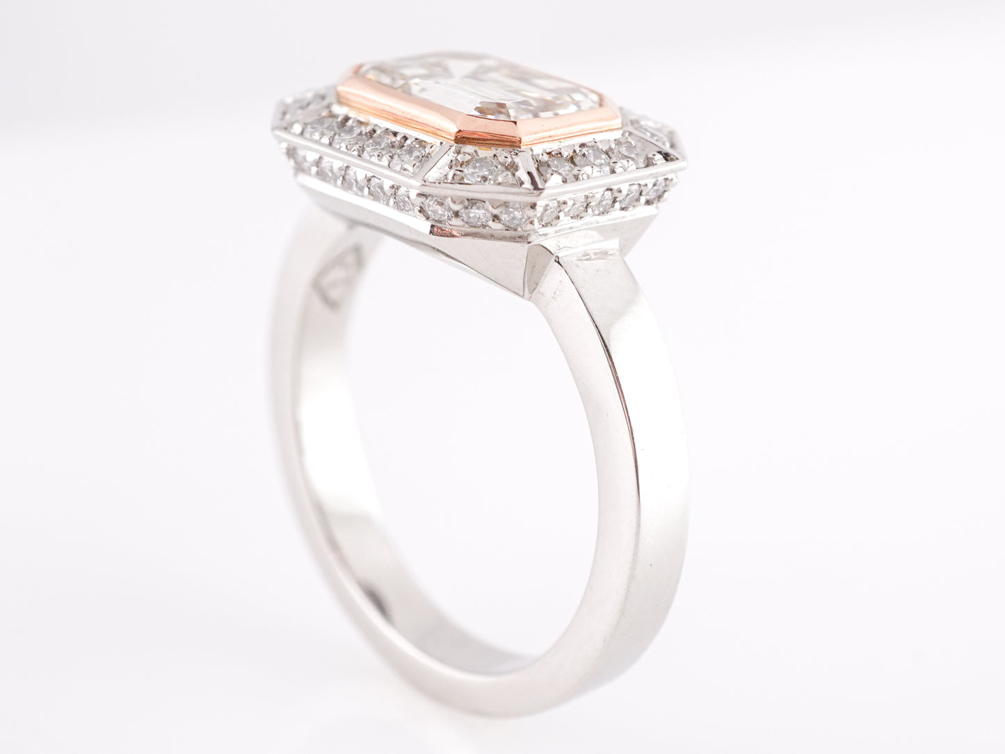 Emerald Cut Diamond Engagement Ring in Platinum and Rose Gold