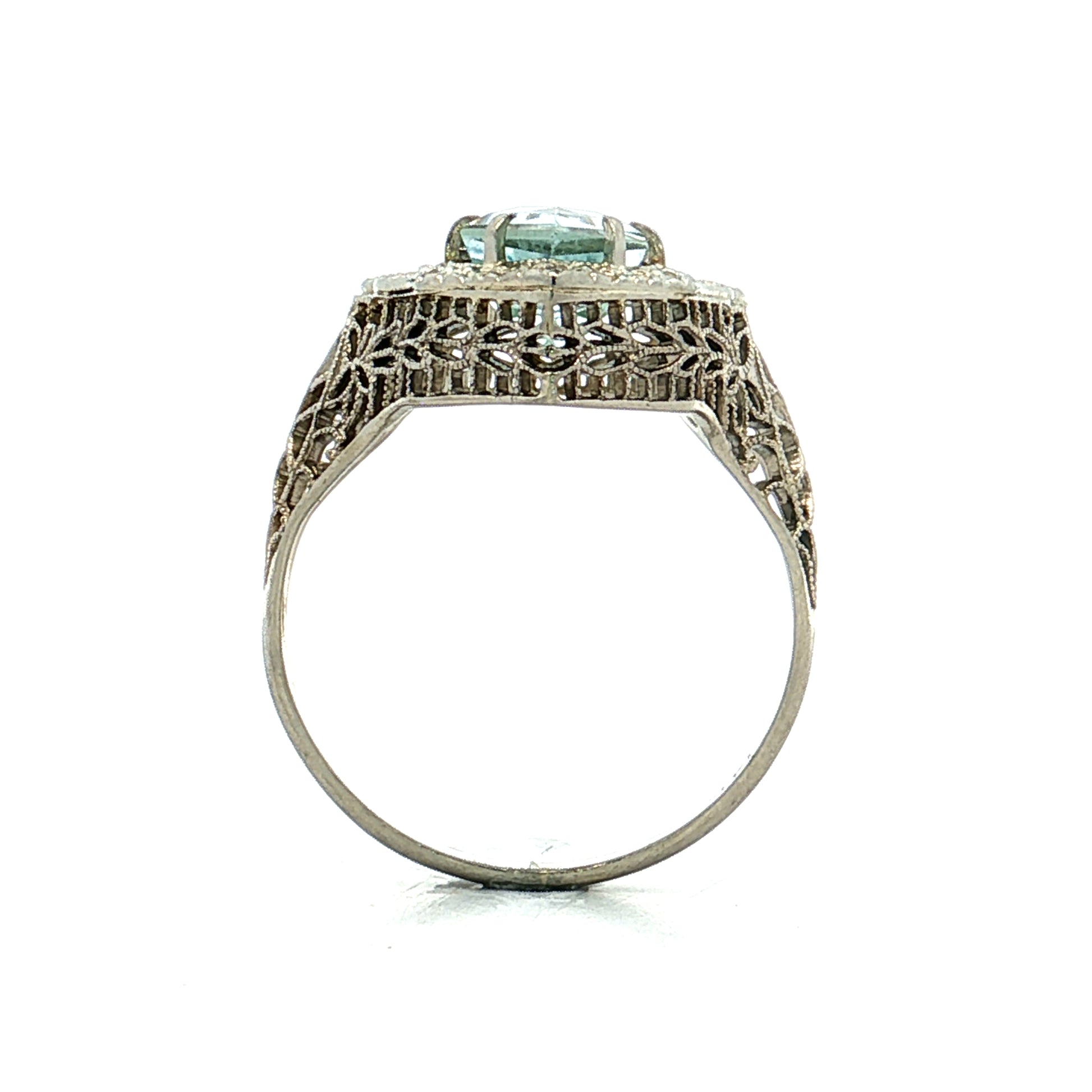 2.07 Art Deco Aquamarine Cocktail Ring 14k White Gold