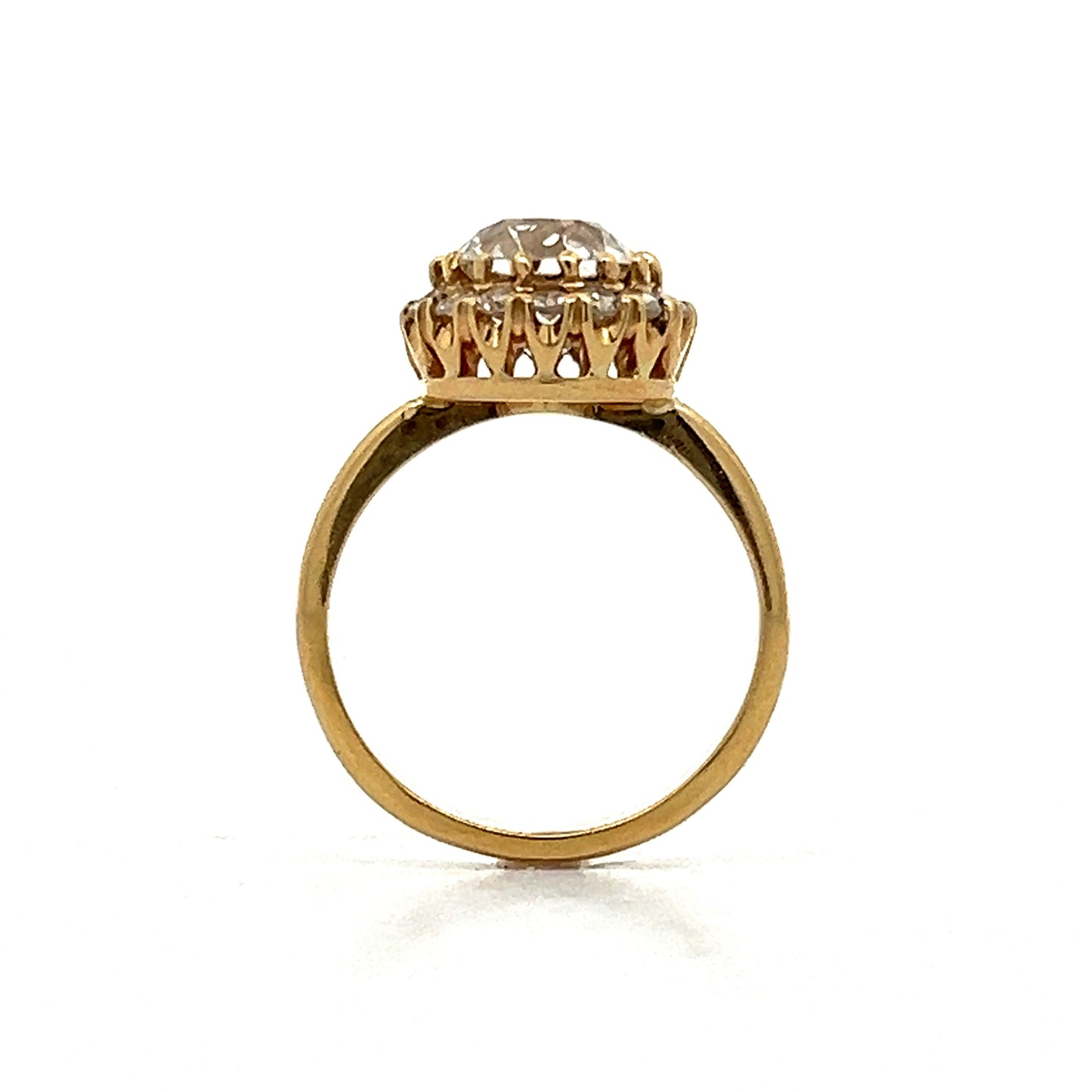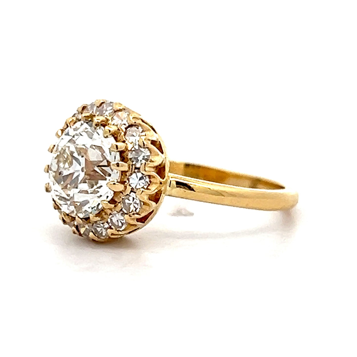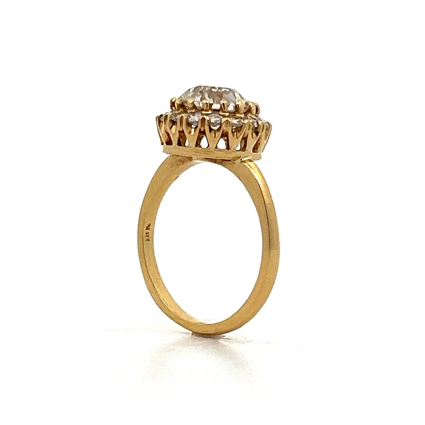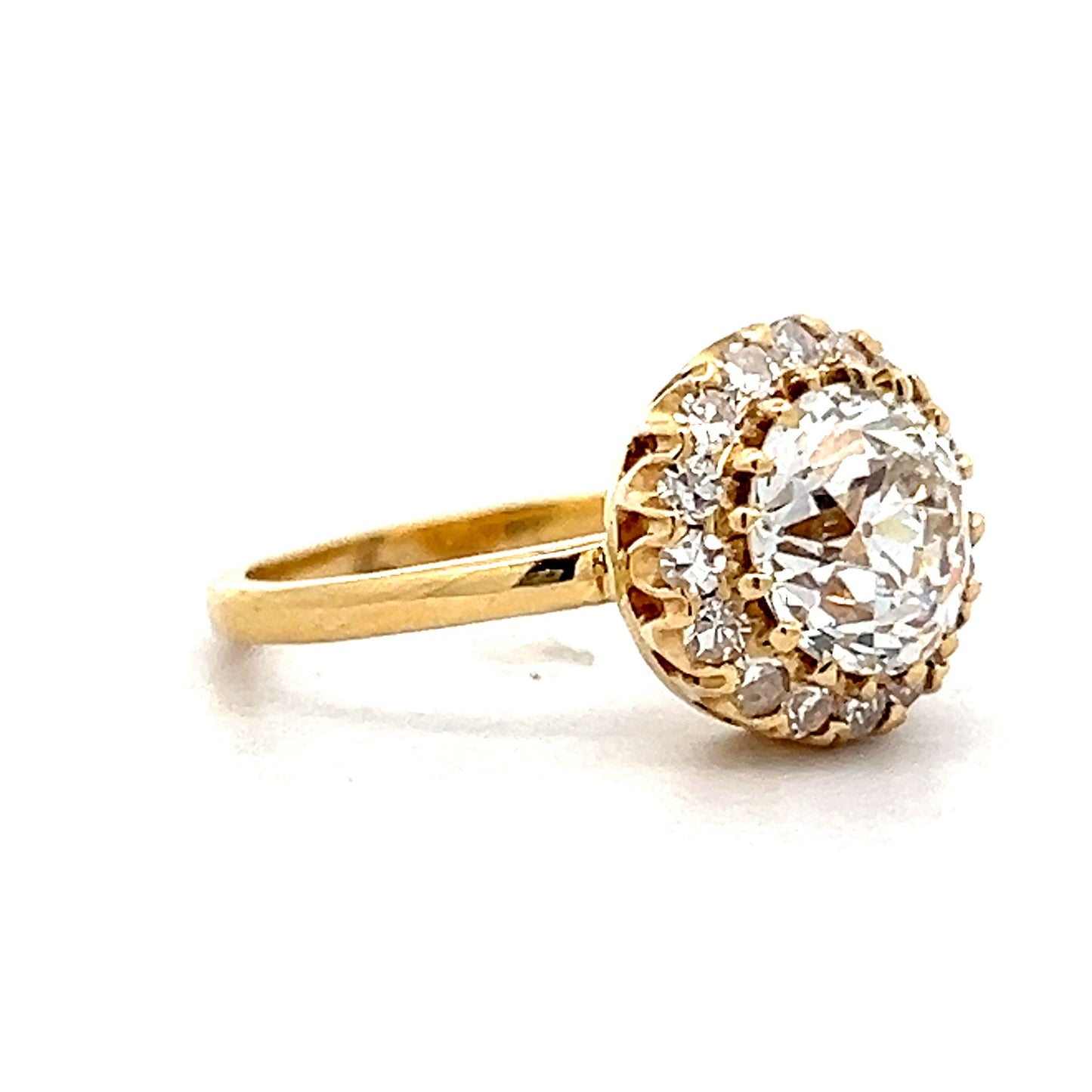 2.16 Victorian Diamond Halo Engagement Ring in 18k Yellow Gold
