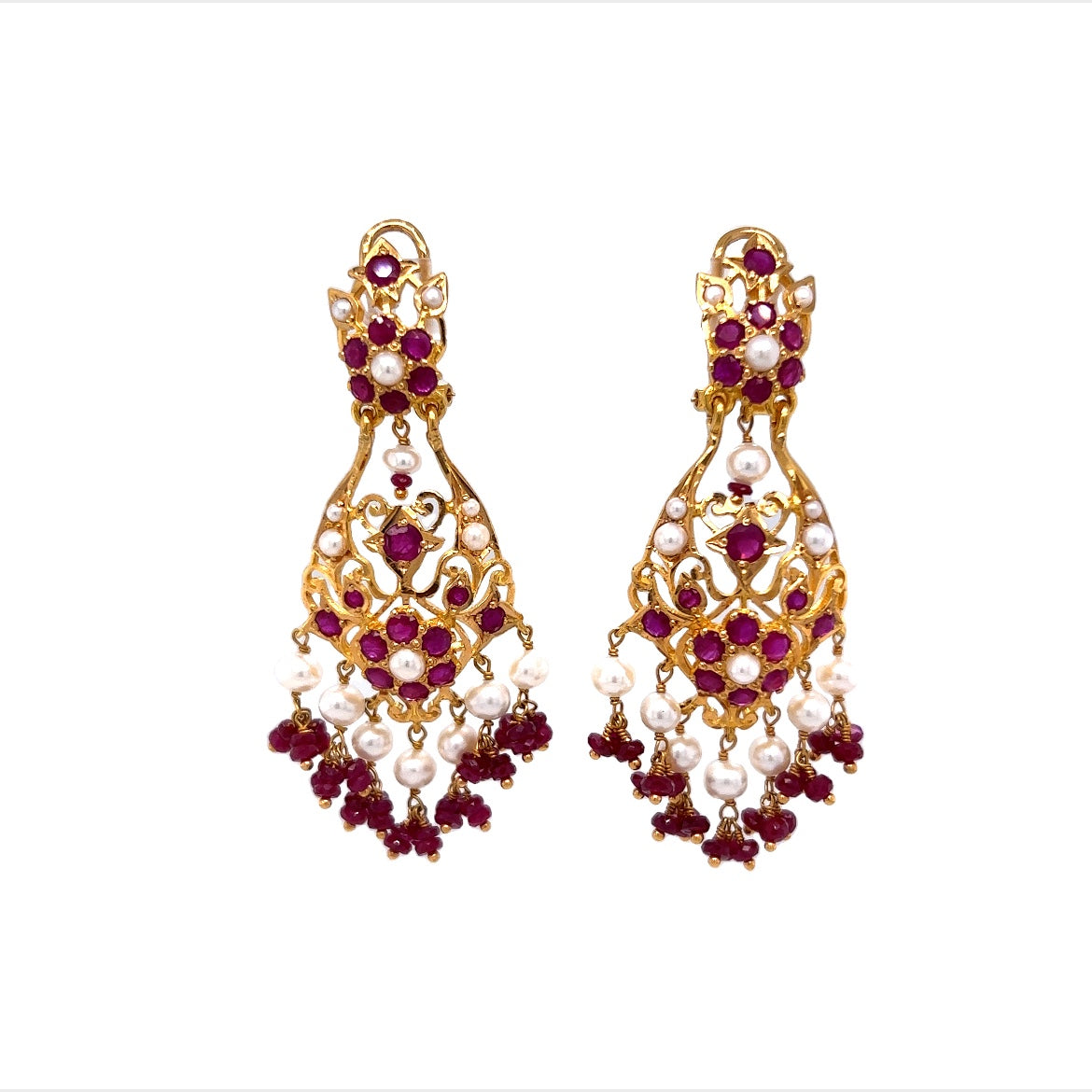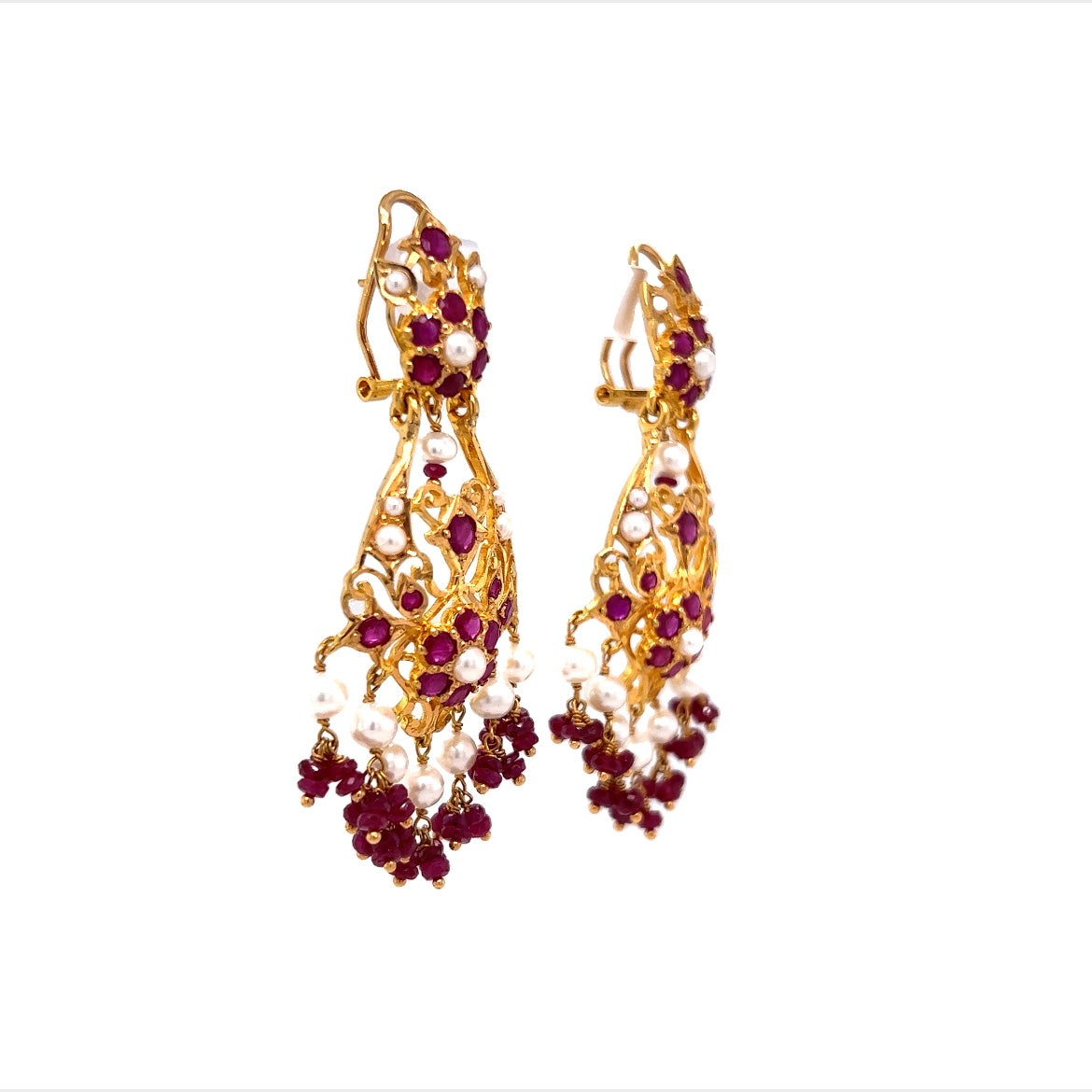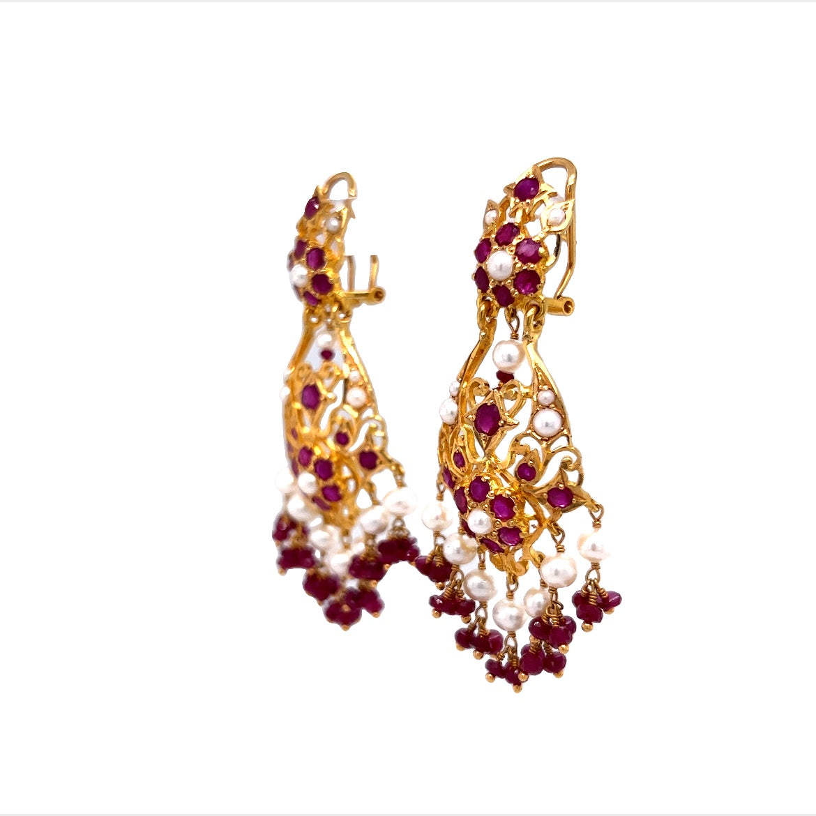2.52 Ruby & Pearl Earrings in 22k Yellow Gold