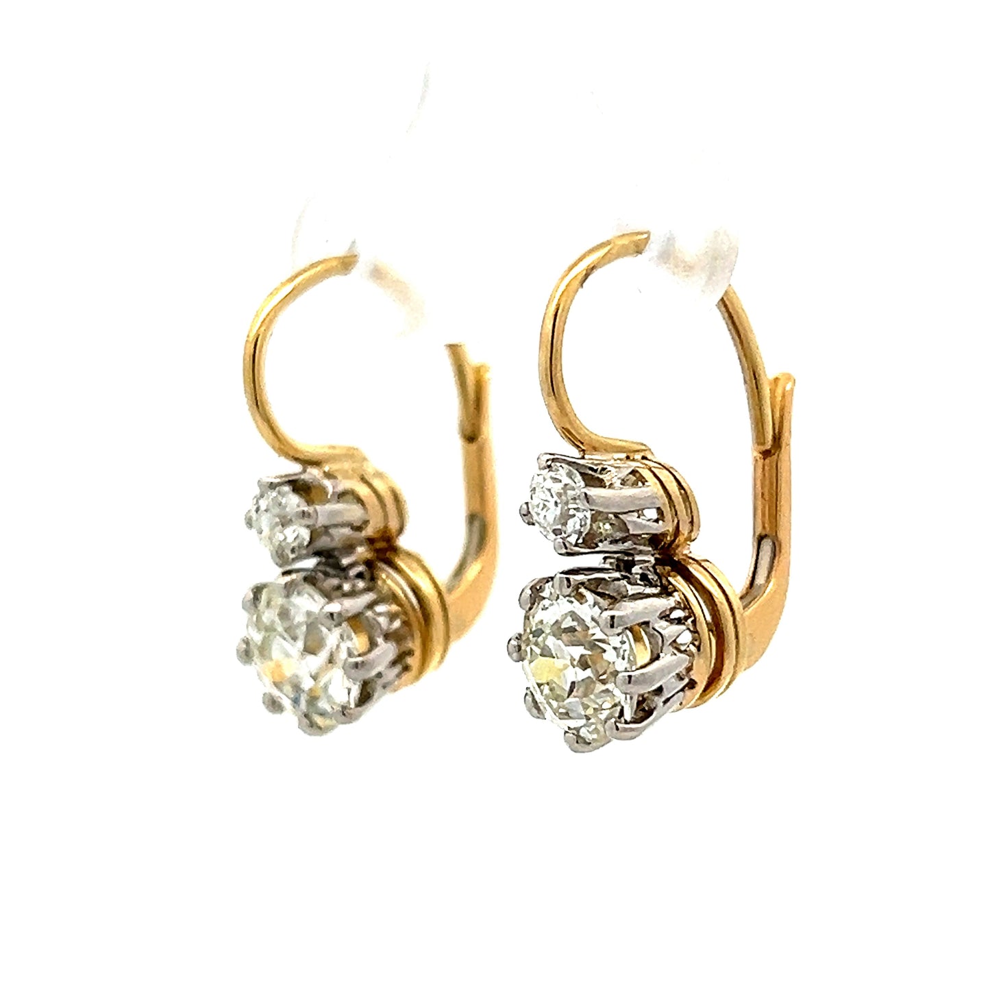 2.54 Vintage Diamond Drop Earrings in Yellow & White Gold