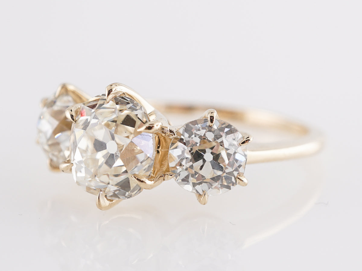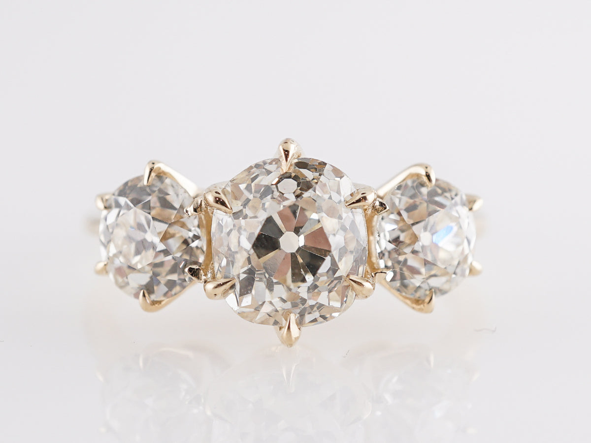 2.64 Three Stone Old European Cut Diamond Ring in 14K