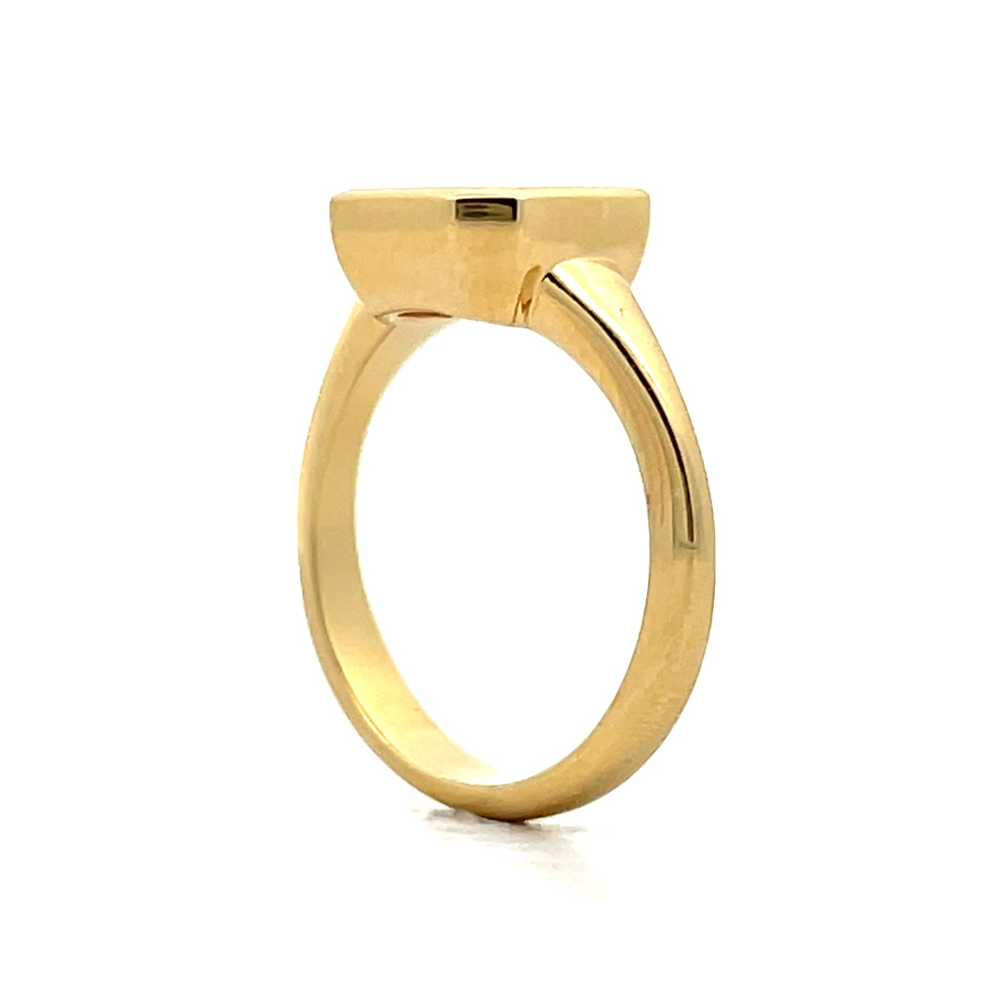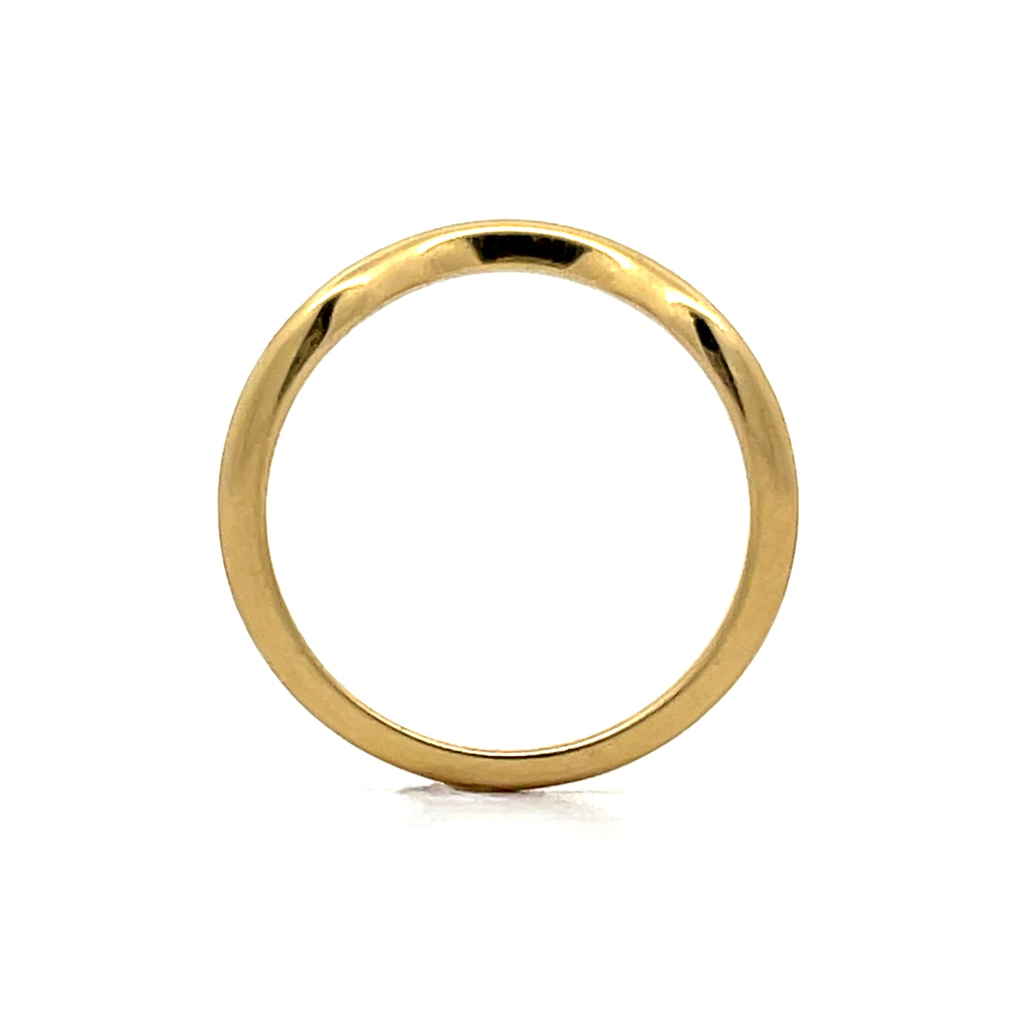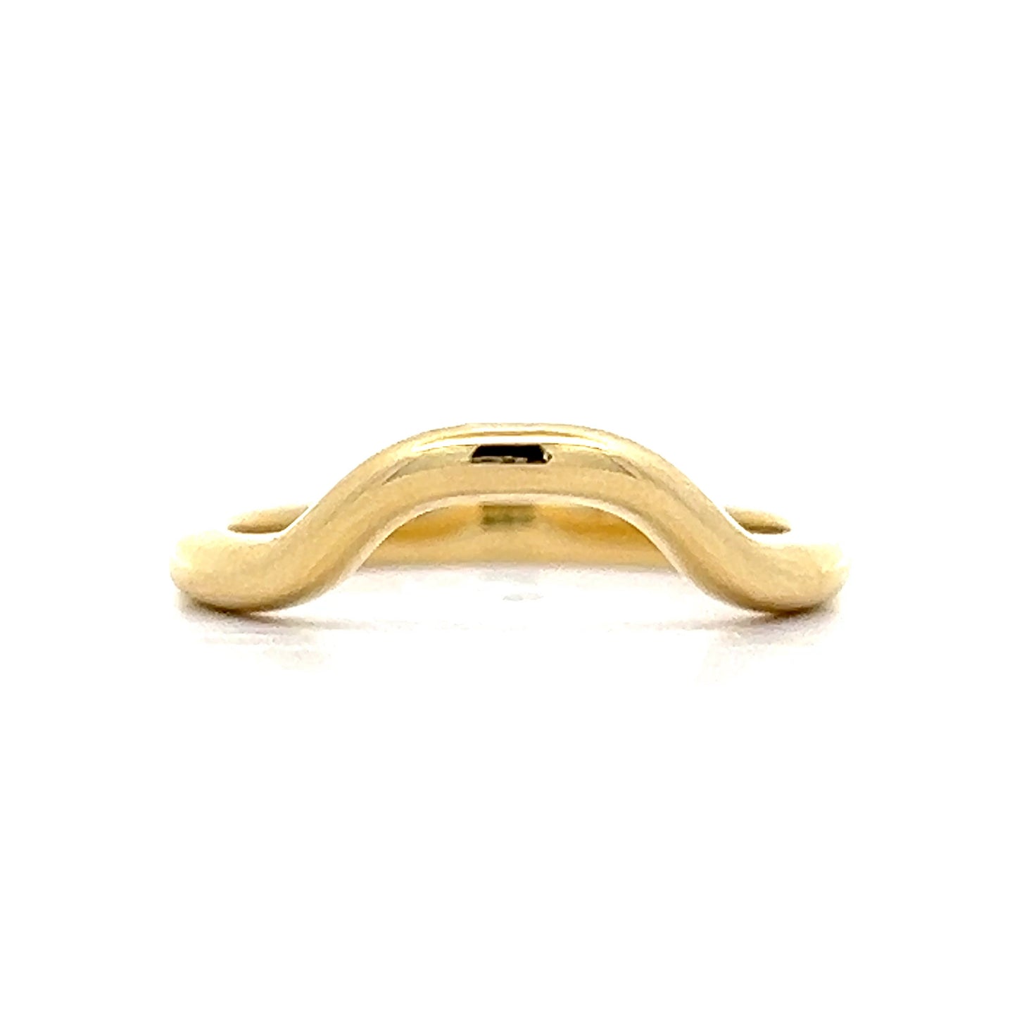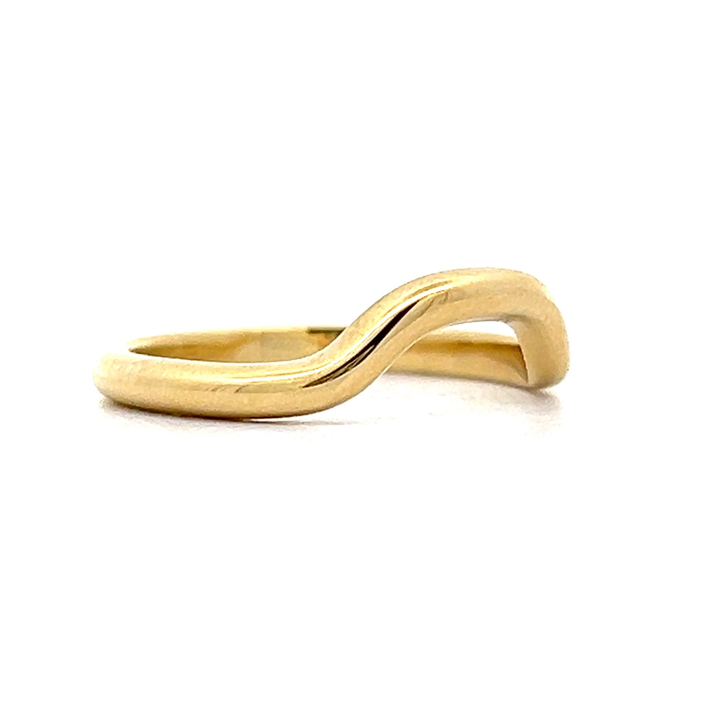 This engagement set is crafted in 18 karat yellow gold and features a 2.75 carat Asscher cut champagne diamond with VS2 clarity. The diamond is secured in a bezel, highlighting its geometric shape. The set includes two matching curved wedding bands designed to frame the engagement ring. The bands follow the contour of the center setting for a seamless fit.