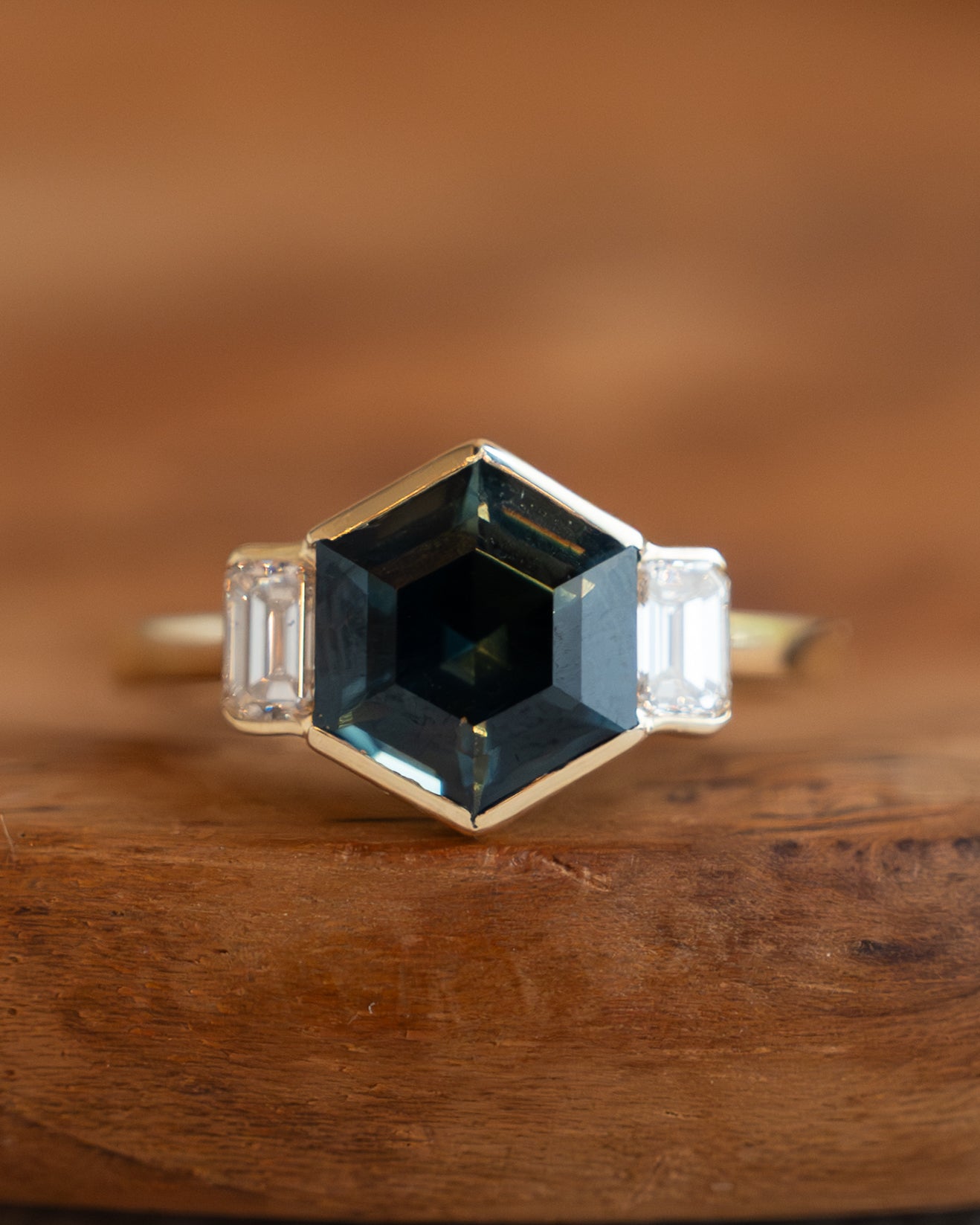 2.91 Hexagon Sapphire Engagement Ring in 14k
