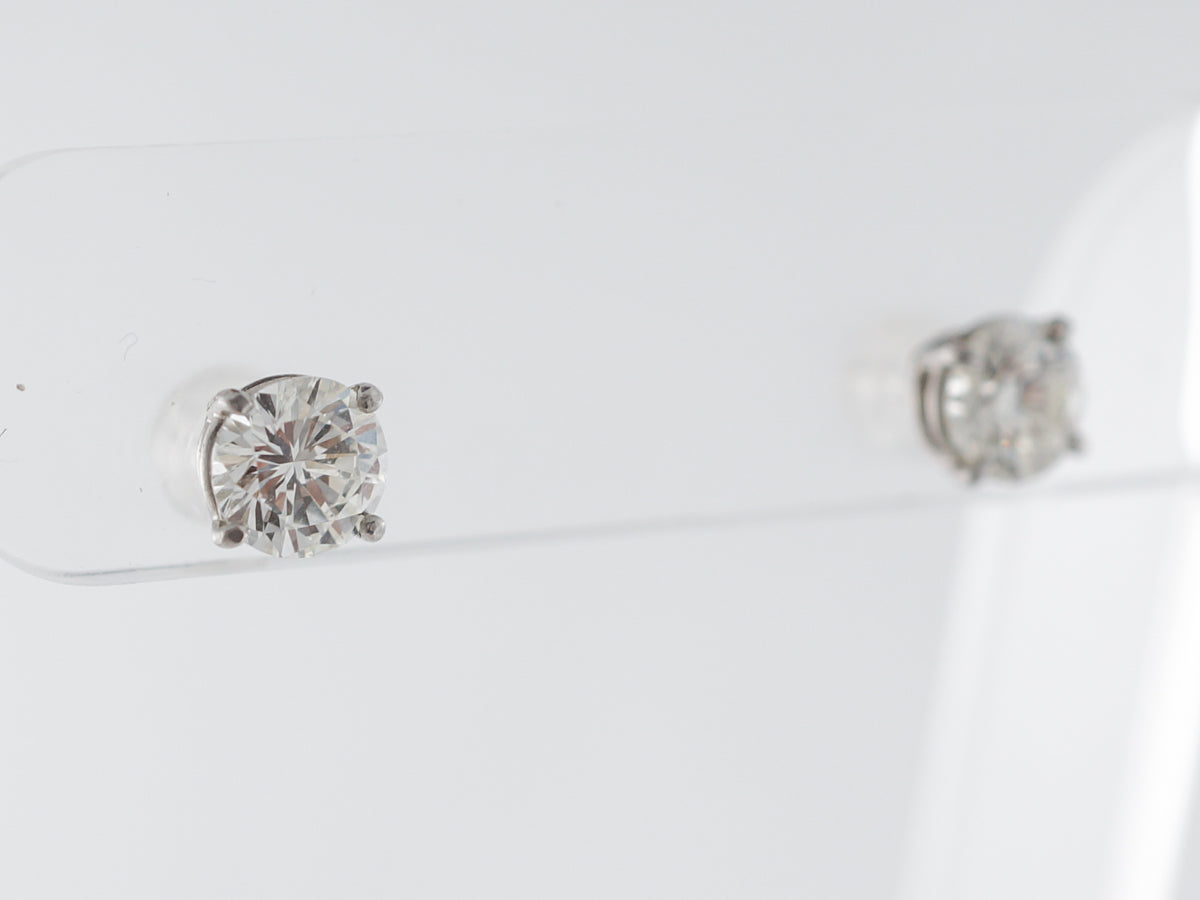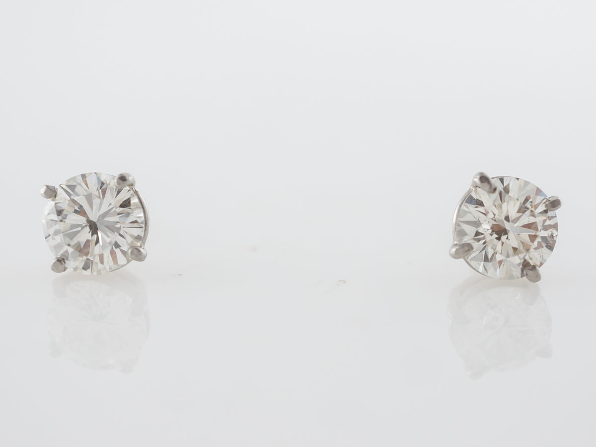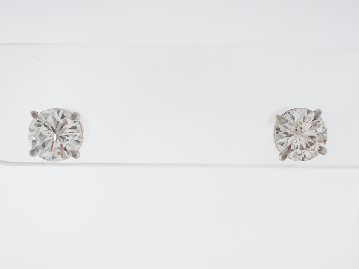 2 Carat Diamond Stud Earrings in Platinum. These platinum and diamond studs are a staple in any persons collection. The round brilliant diamonds are set in 4 prong platinum baskets in the most classic style setting with a push back closure.. The total diamond weight is 2.06 carats. The perfect everyday earring.