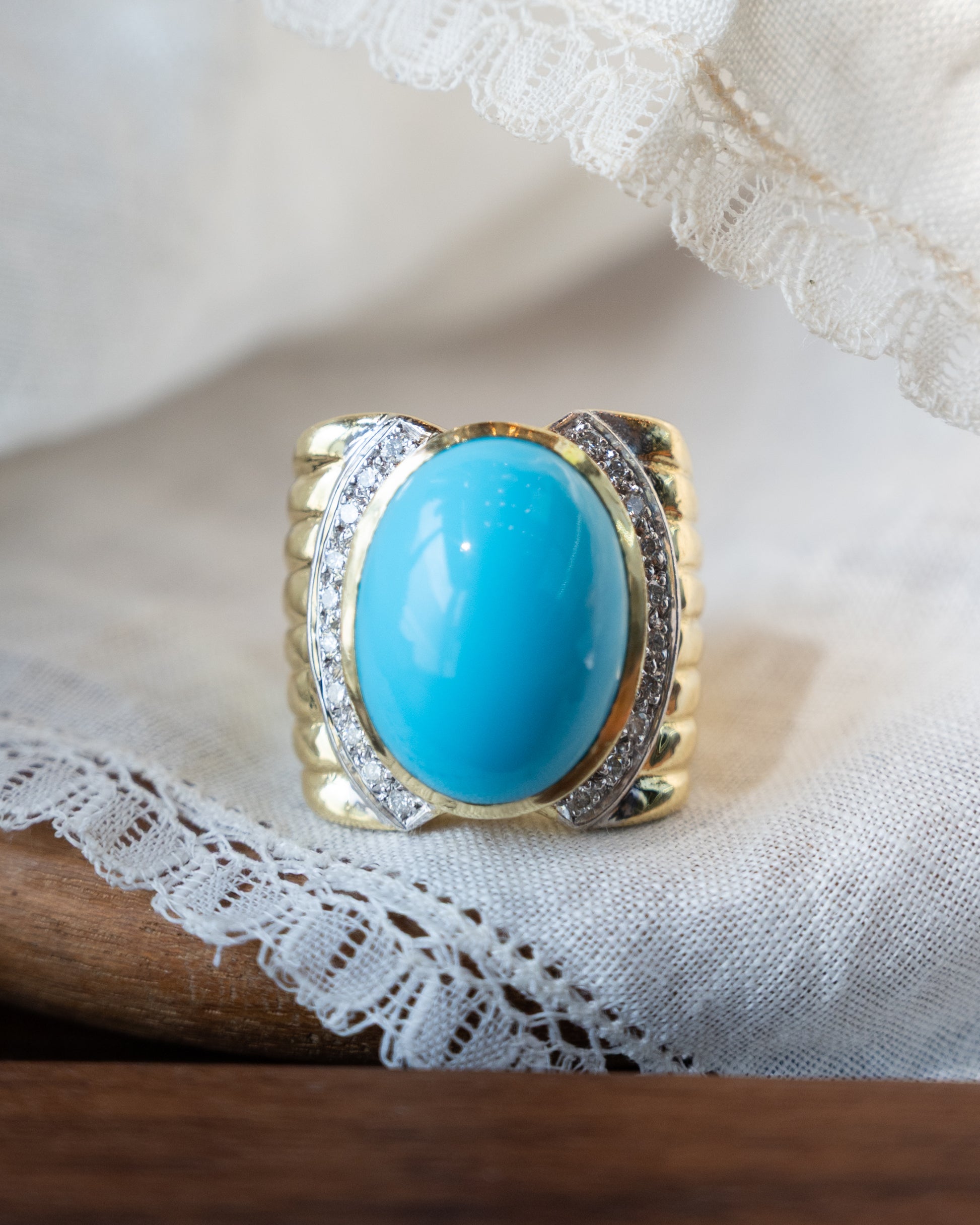 20.36 Vintage Cabochon Turquoise Cocktail Ring 18k