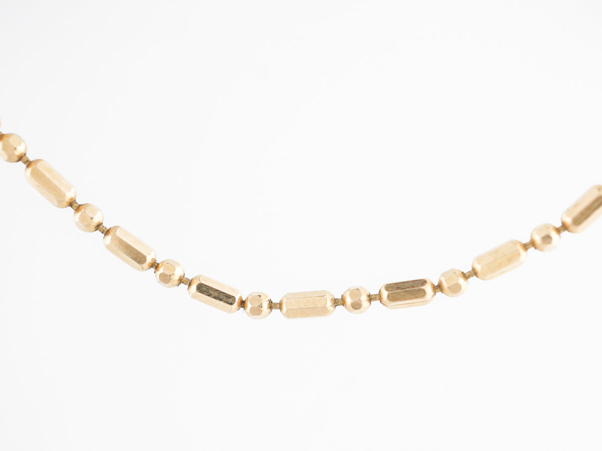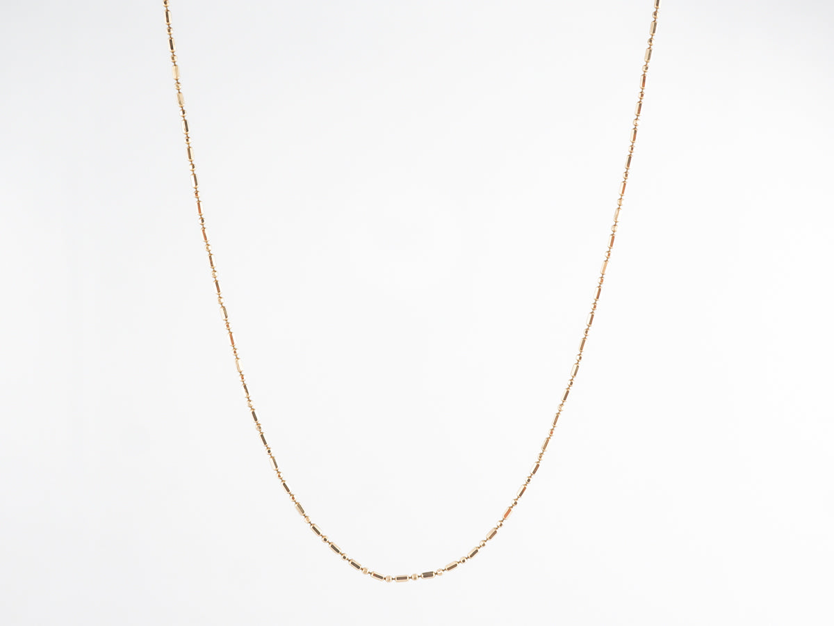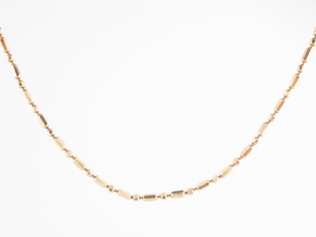 20 inch Italian Necklace 14k Yellow Gold. This modern chain necklace is finished in 14 karat yellow gold. The chain measures 20 inches in length and the unique shapes of the links make this an excellent piece to layer with a few other chains.
