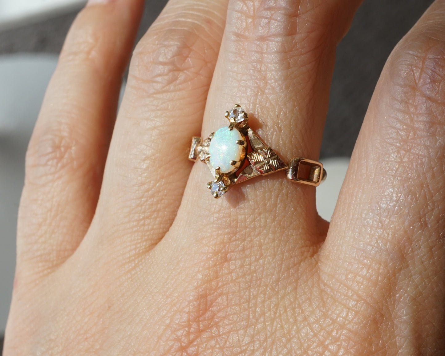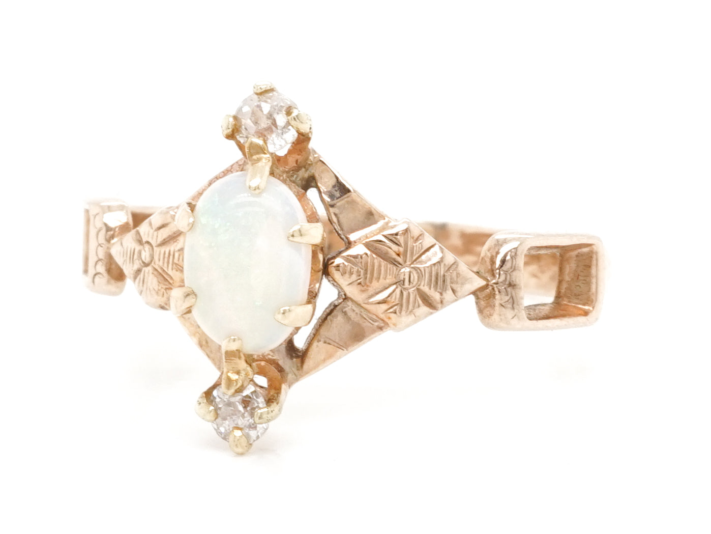 .20 Victorian Opal and Diamond Right Hand Ring in 14K Gold