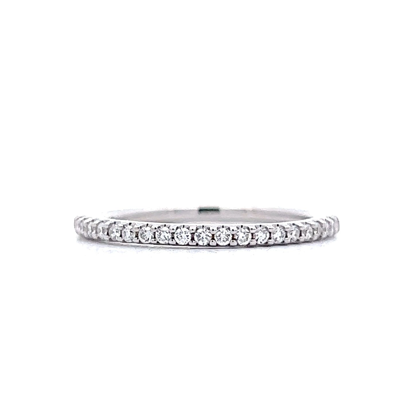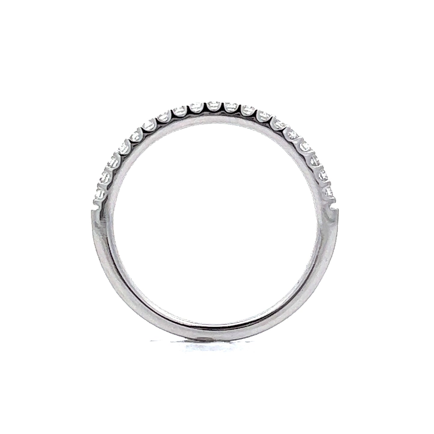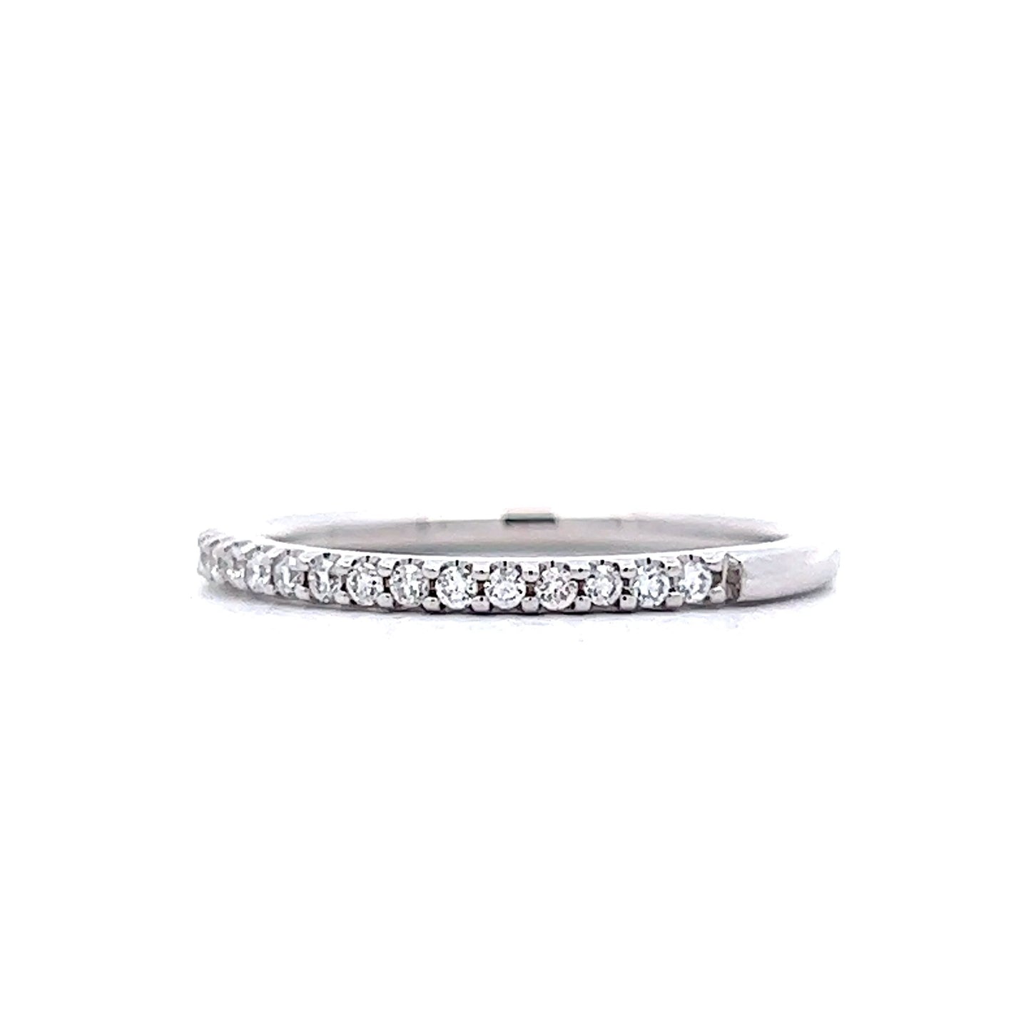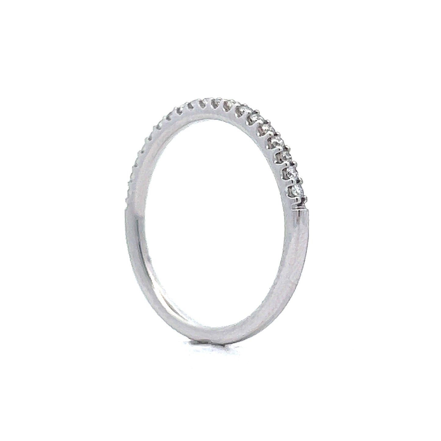 This modern diamond wedding band is crafted from 14 karat white gold and is finished with a high polish. The band features a round brilliant cut diamonds, weighing .21 carats with SI1 clarity and I color. Classic and minimalist.