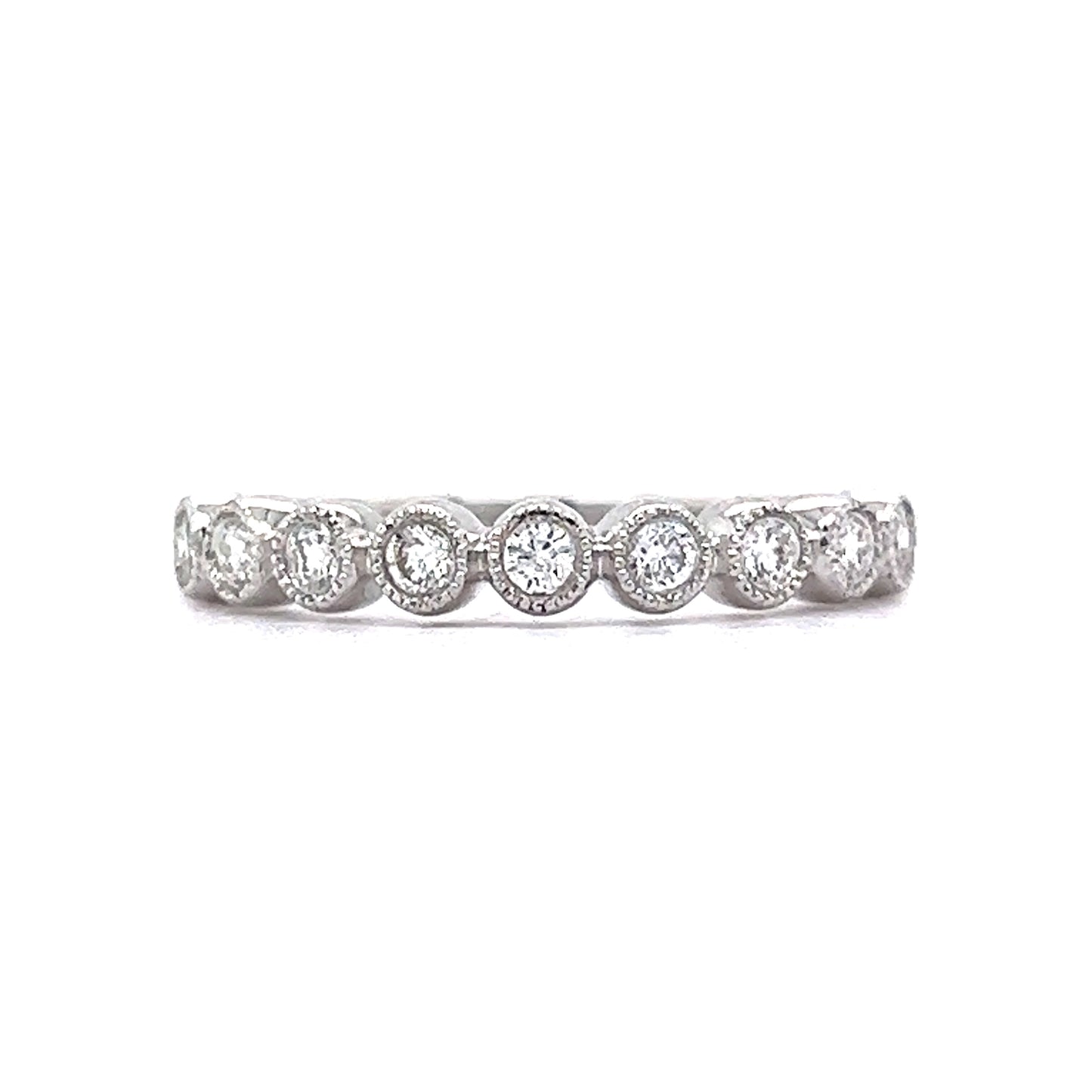 .24 Milgrain Bezel Diamond Wedding Band in 14k White Gold