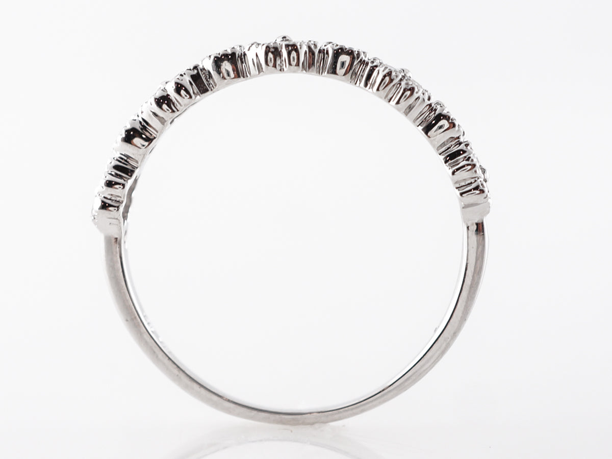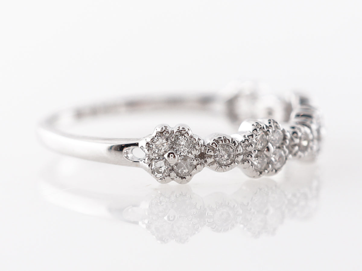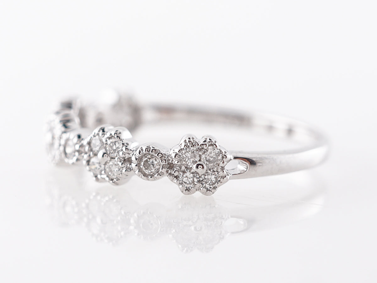 .24 Milgrain Diamond Band in 14k White Gold. This modern wedding band features .24 carats of diamonds in a neat pattern of clusters with milgrain detail done in 14 karat white gold. The milgrain adds some sparkle to the ring and would make a bright addition to any engagement ring!