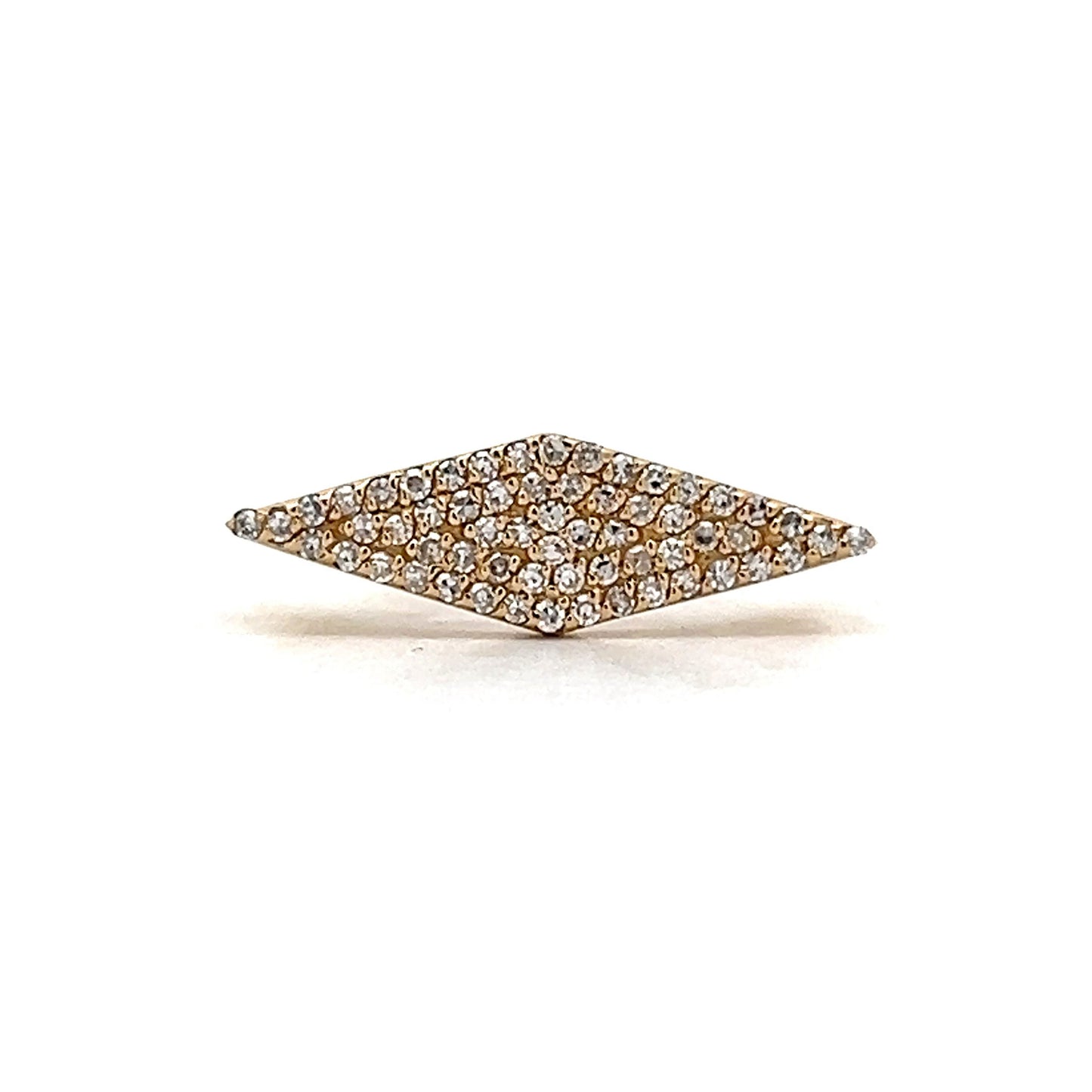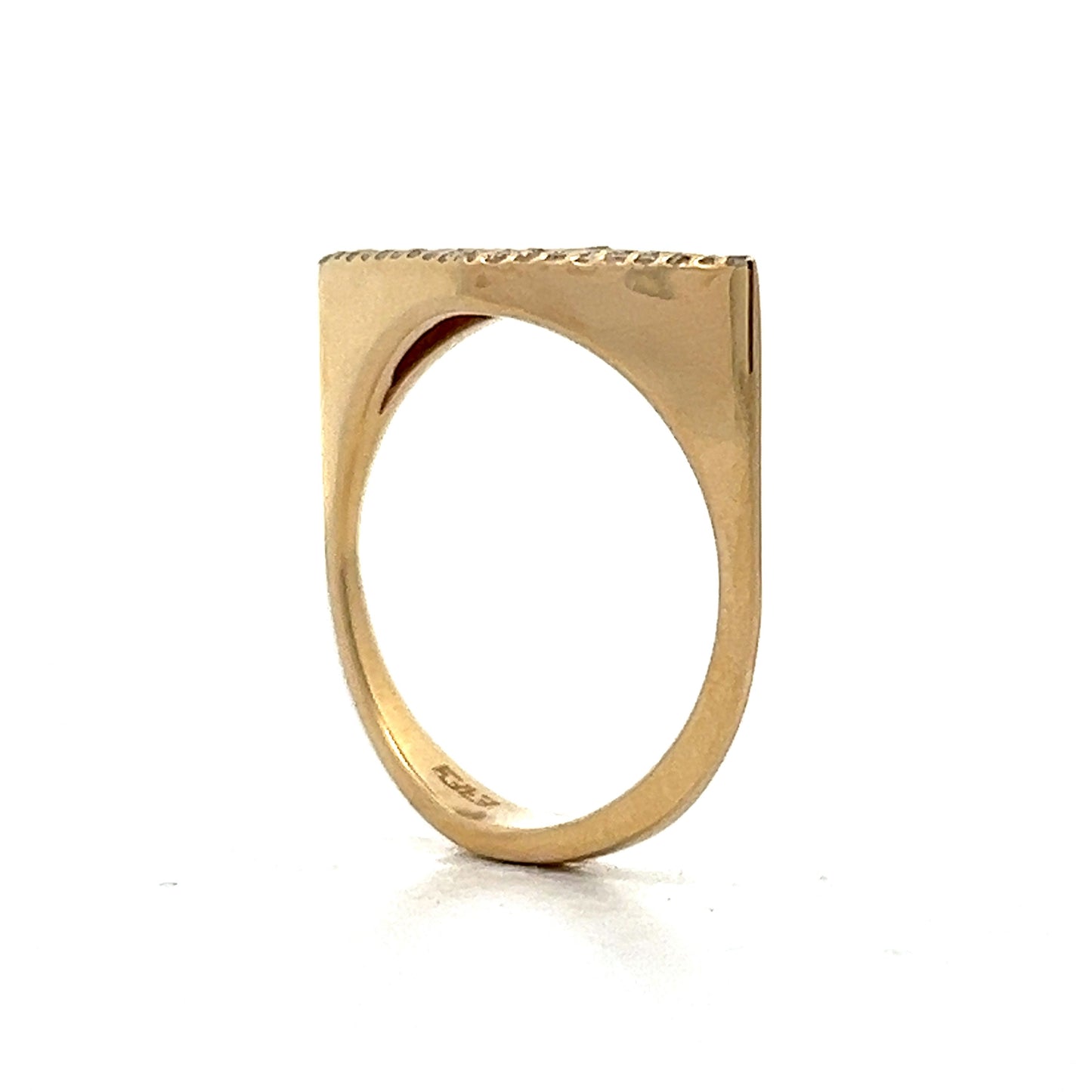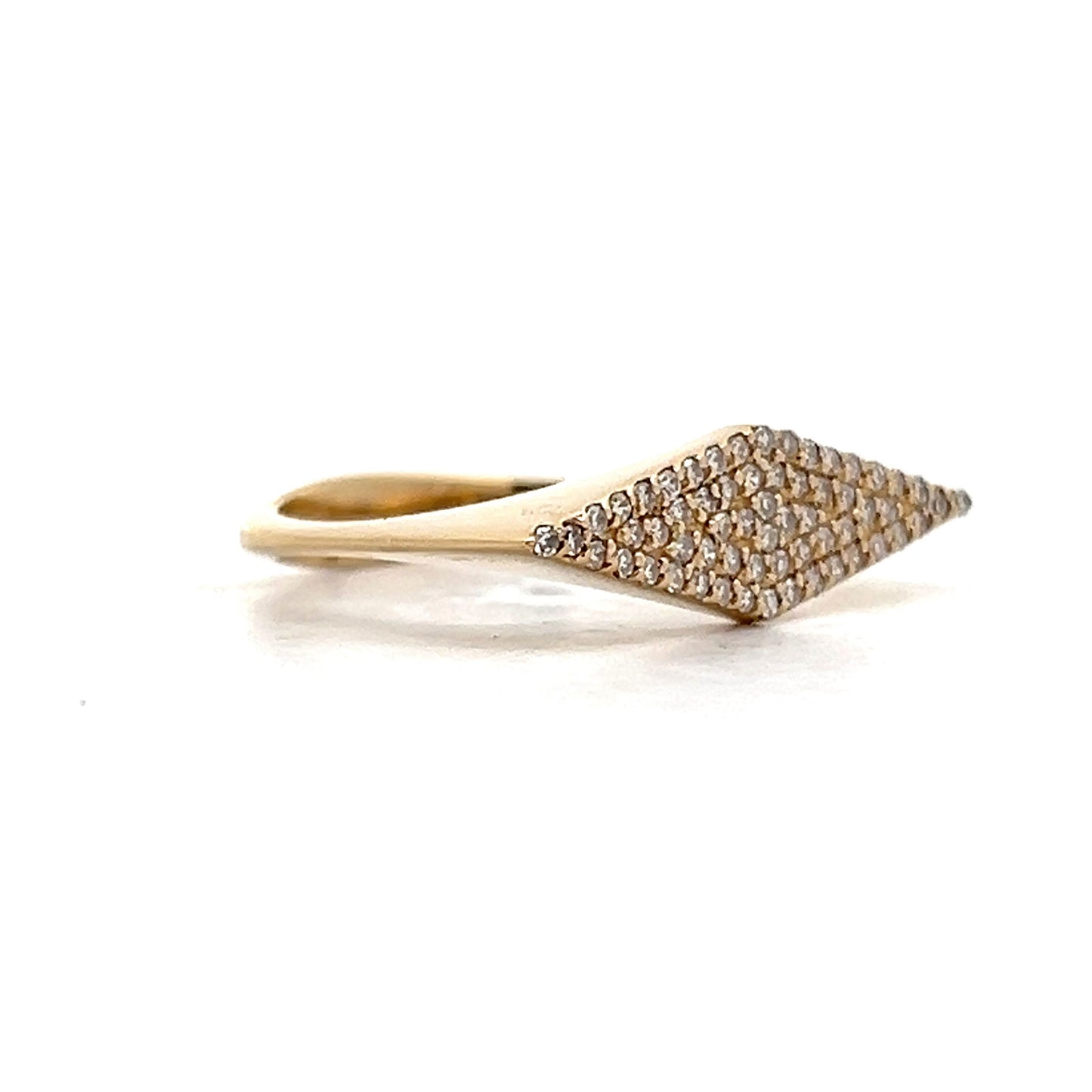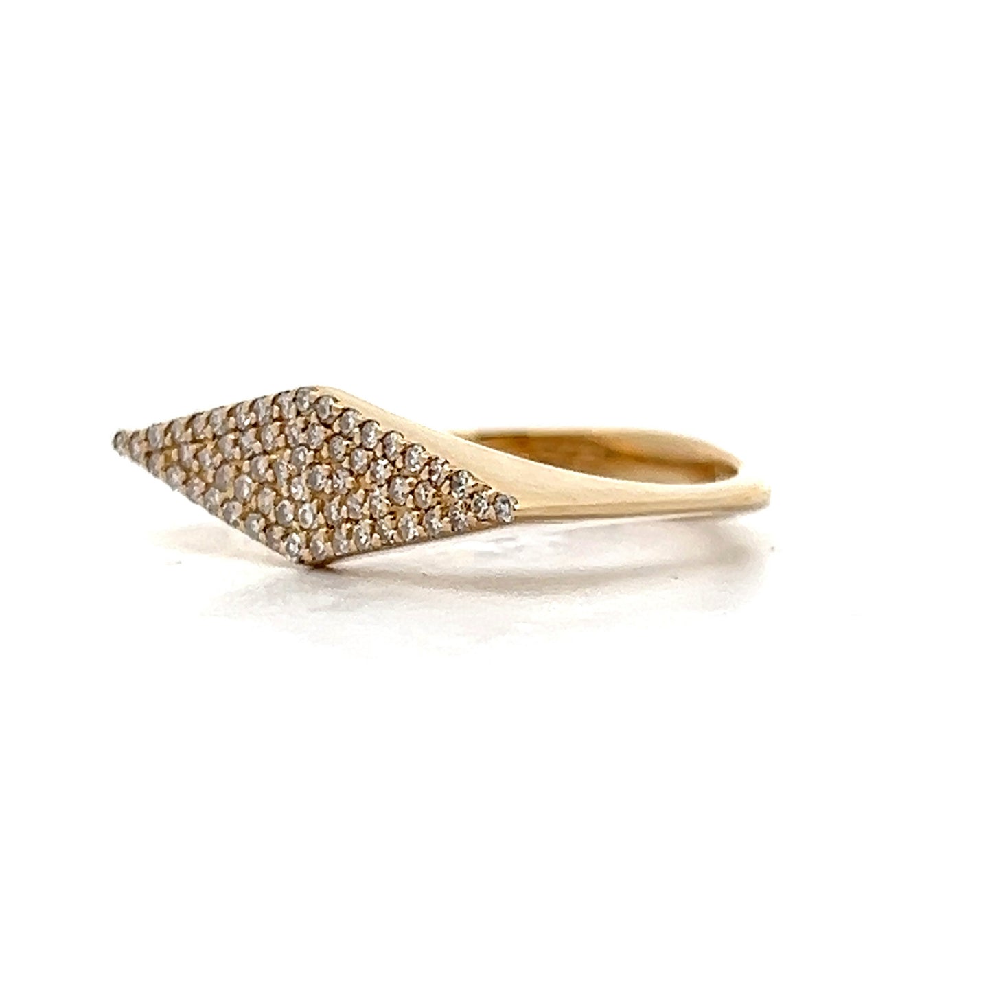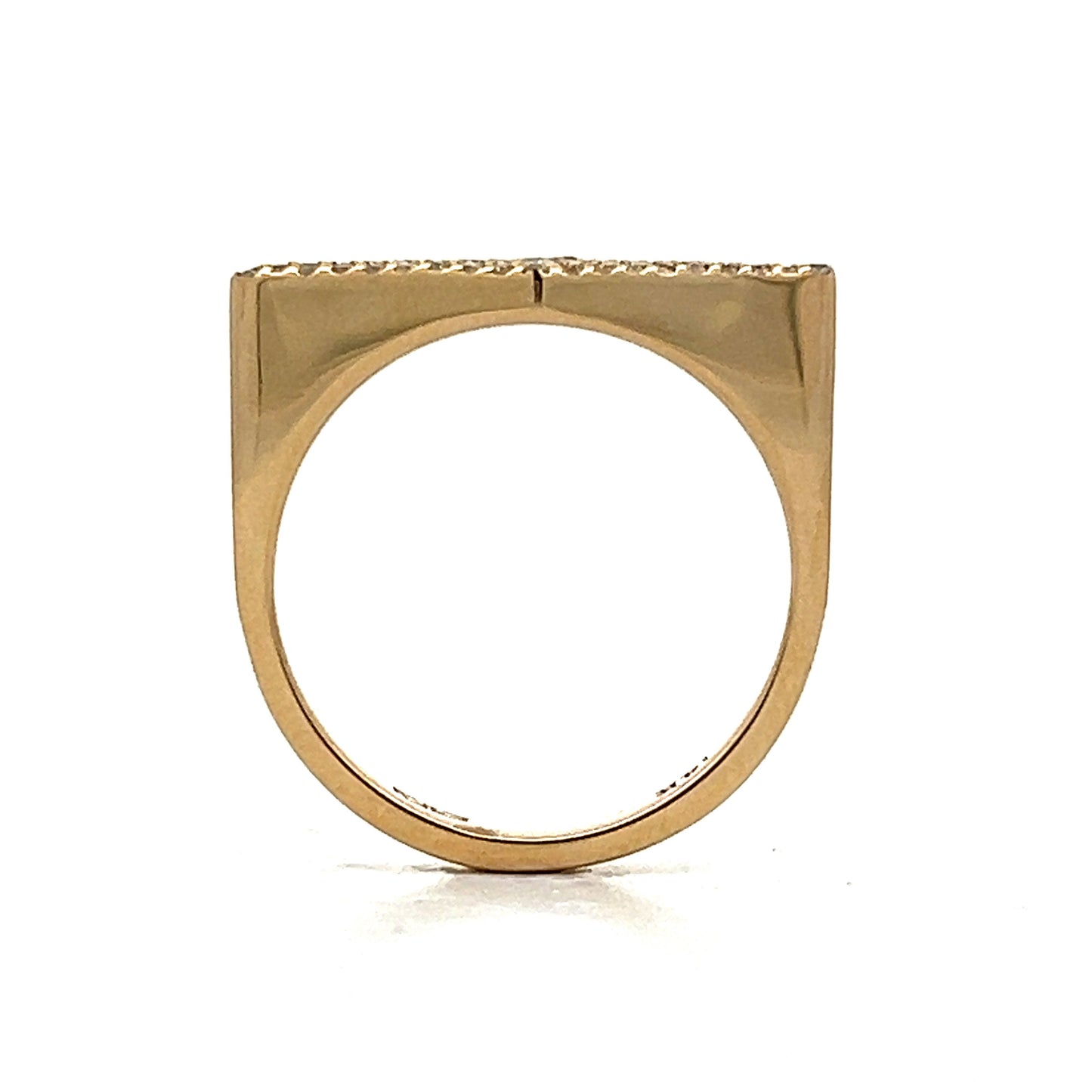 Featuring a .24 carats of round brilliant cut diamonds, this piece showcases diamond clarity ranging from VS2 to SI1 and a lovely G color. The diamonds are set in a 14 karat yellow gold. The pave setting amplifies the ring’s sparkle, creating a dazzling effect with every movement. This cocktail ring is designed to be subtle, yet eye-catching and makes it an excellent choice for either special occasions or everyday wear.