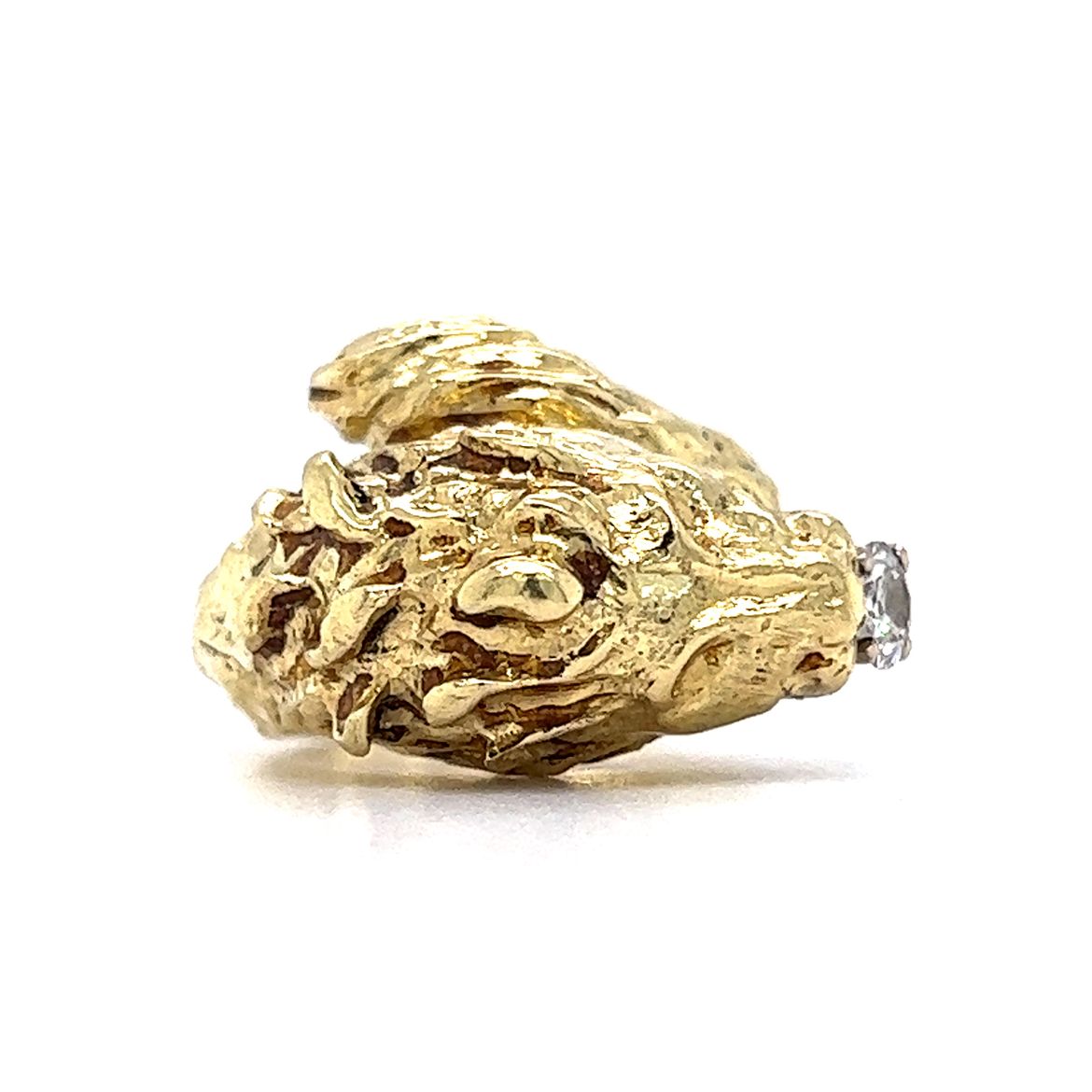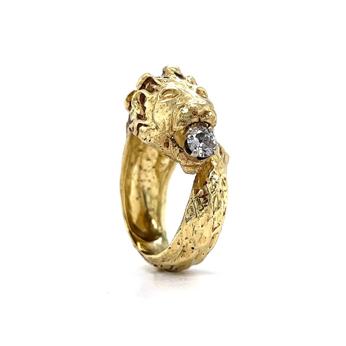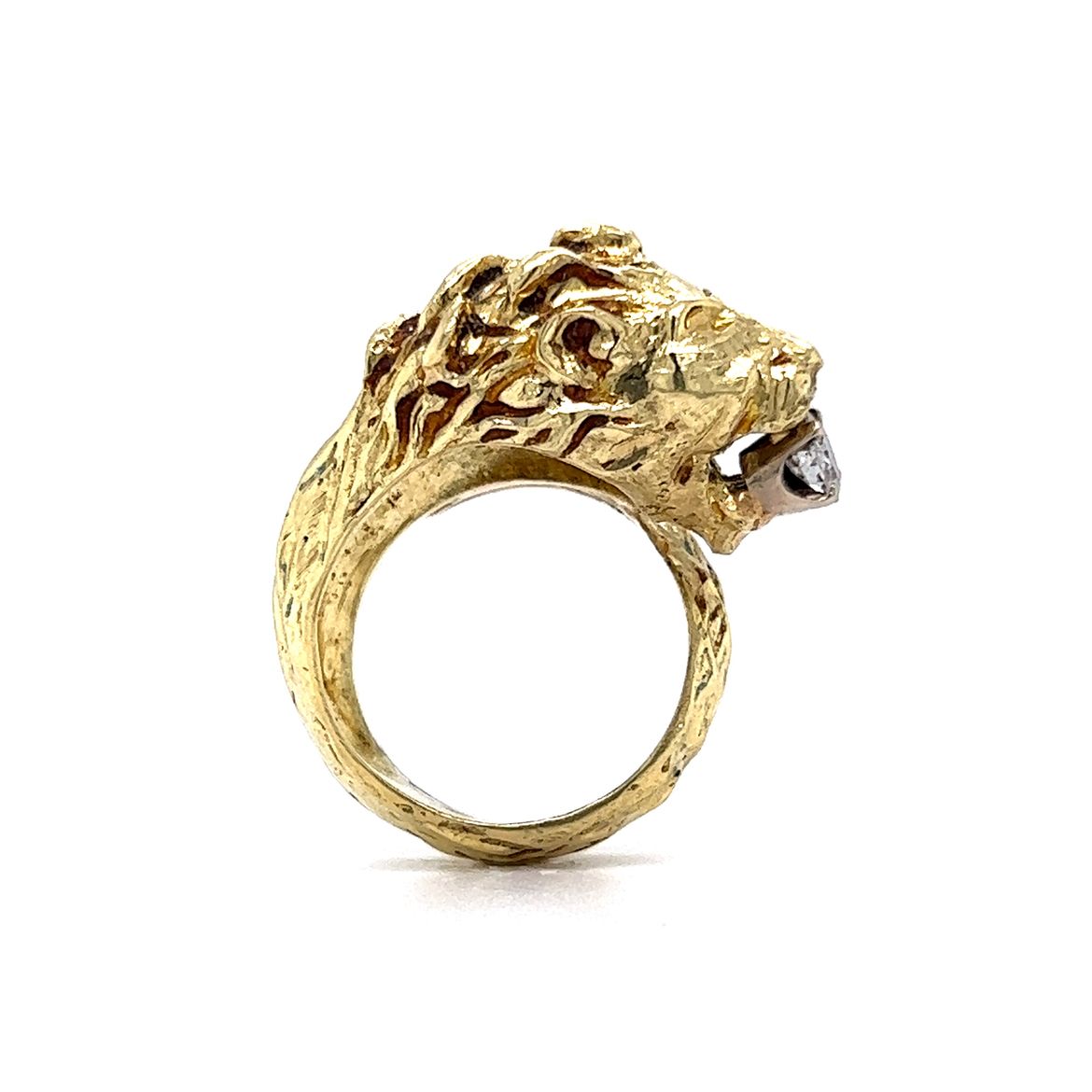 .24 Vintage Mid-Century Diamond Lion Ring in 18k Yellow Gold