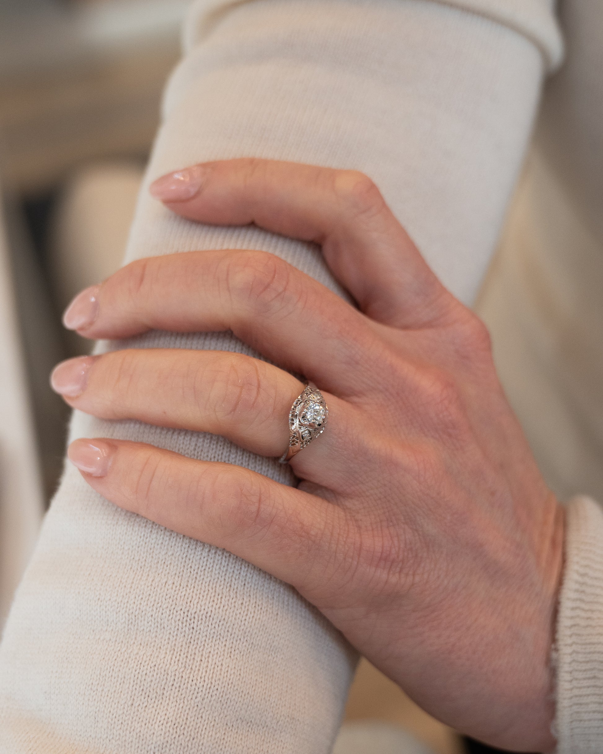 .25 Antique Deco Diamond Filigree Engagement Ring 18k