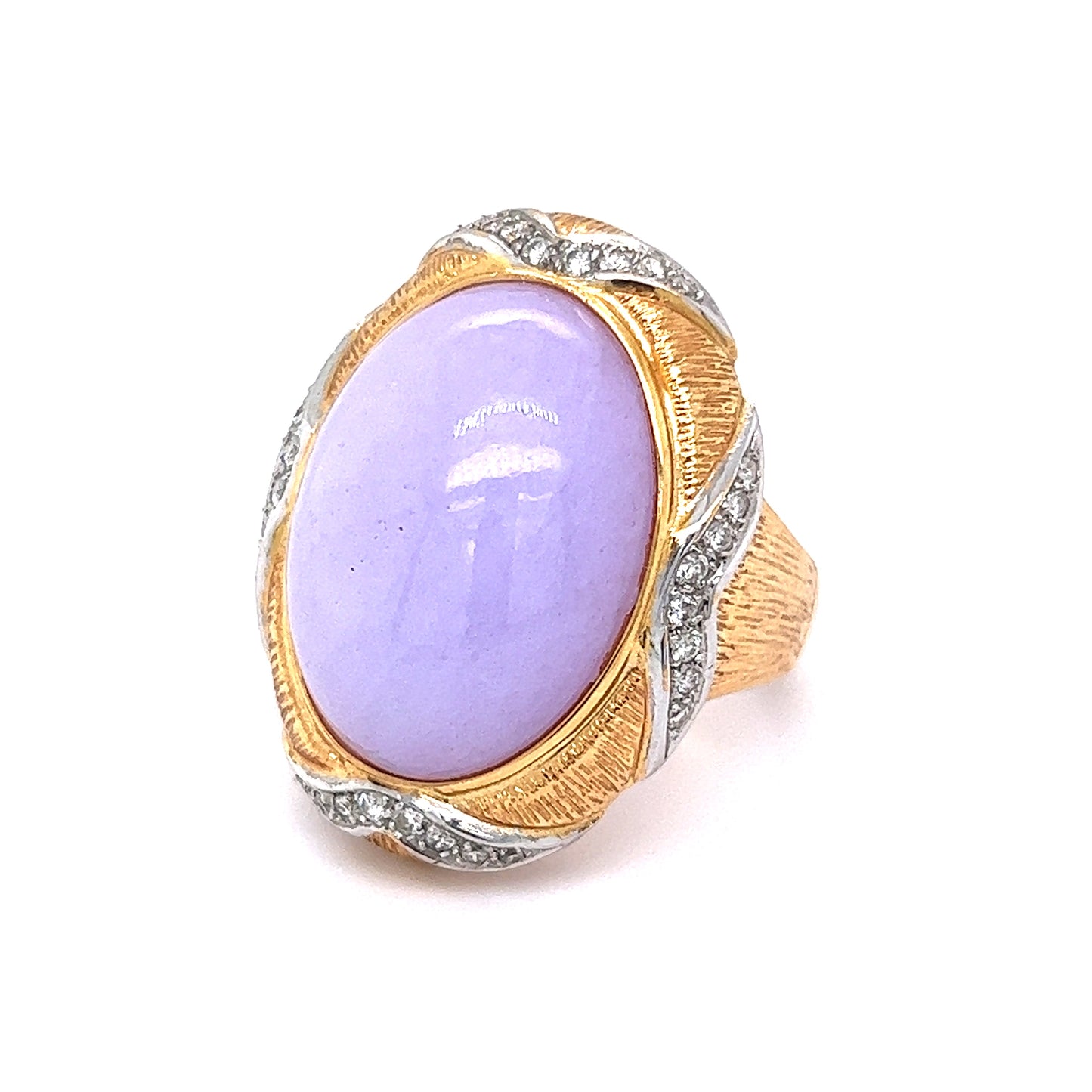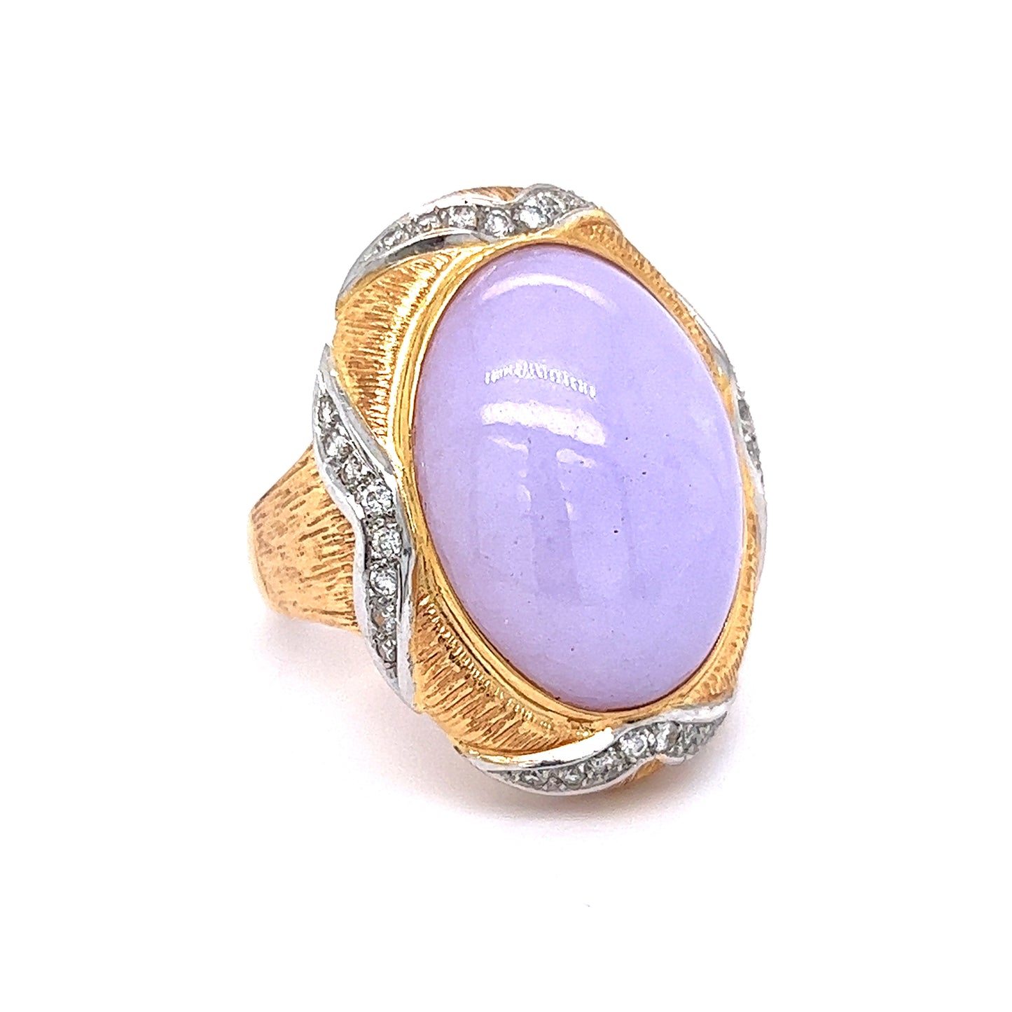 26.27 Lavender Jadeite Cabochon Cocktail Ring in 14k Yellow Gold