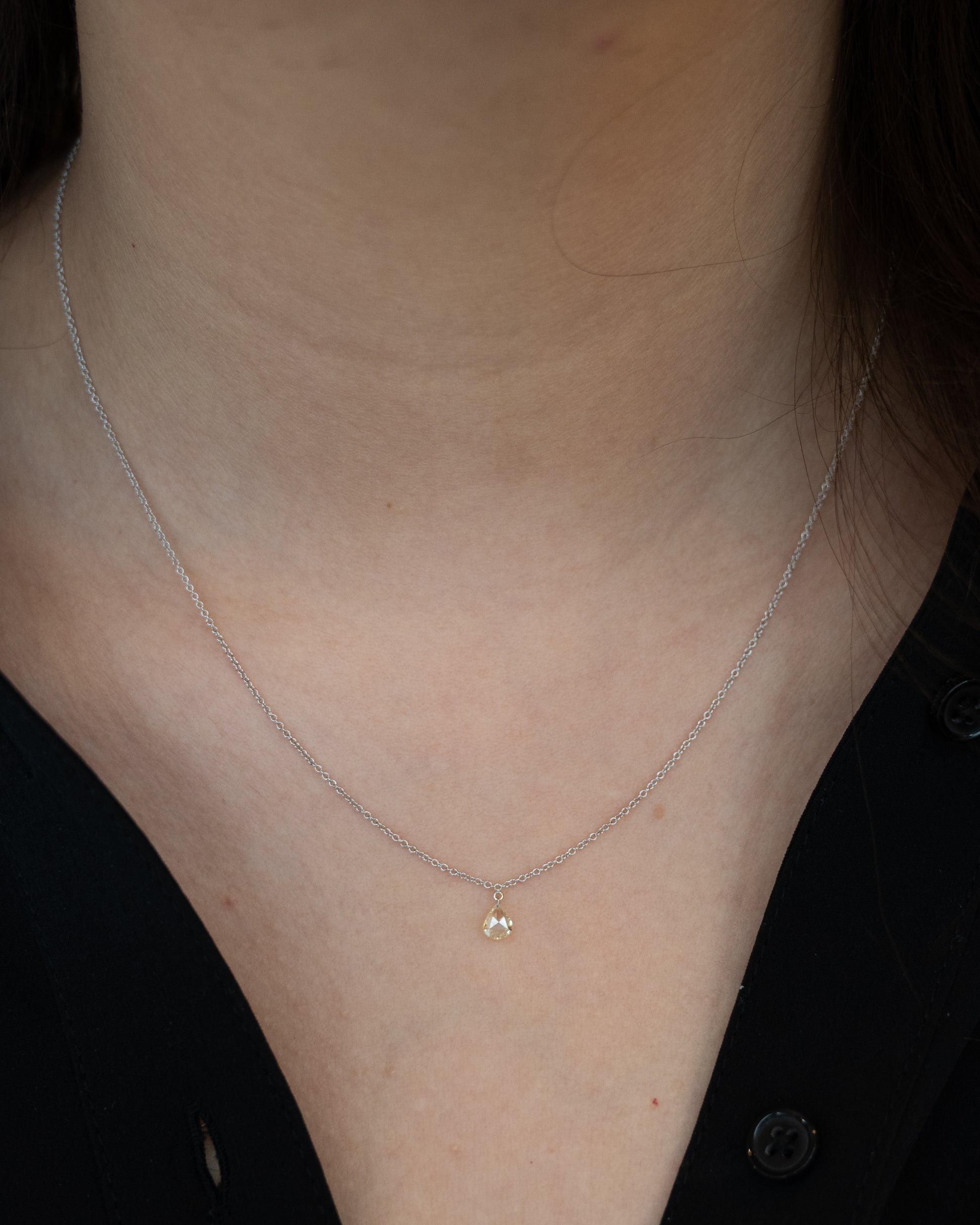 .26 Pear Rose Cut Diamond Pendant Necklace 14k