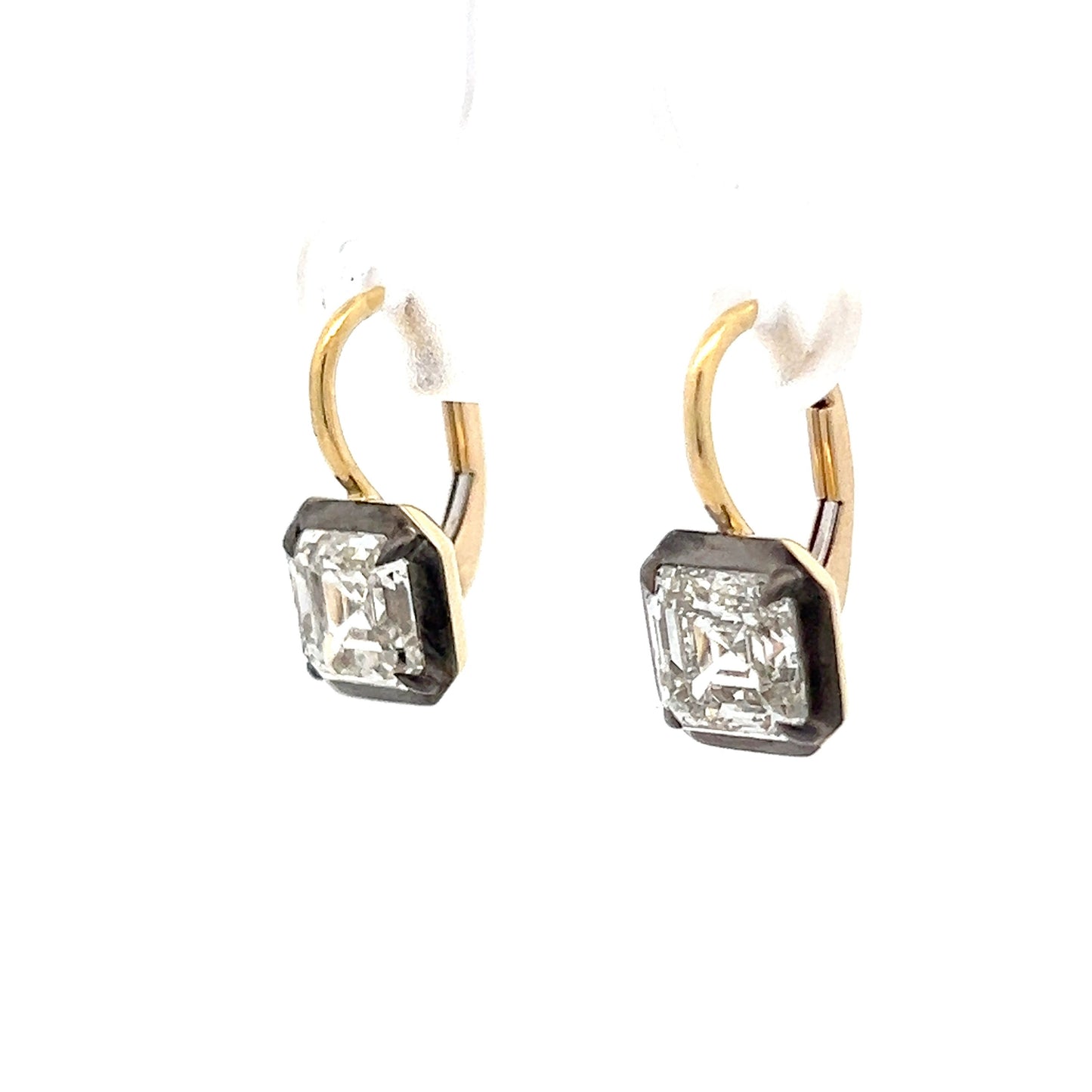 3.02 Asscher Cut Diamond Drop Earrings in 18k