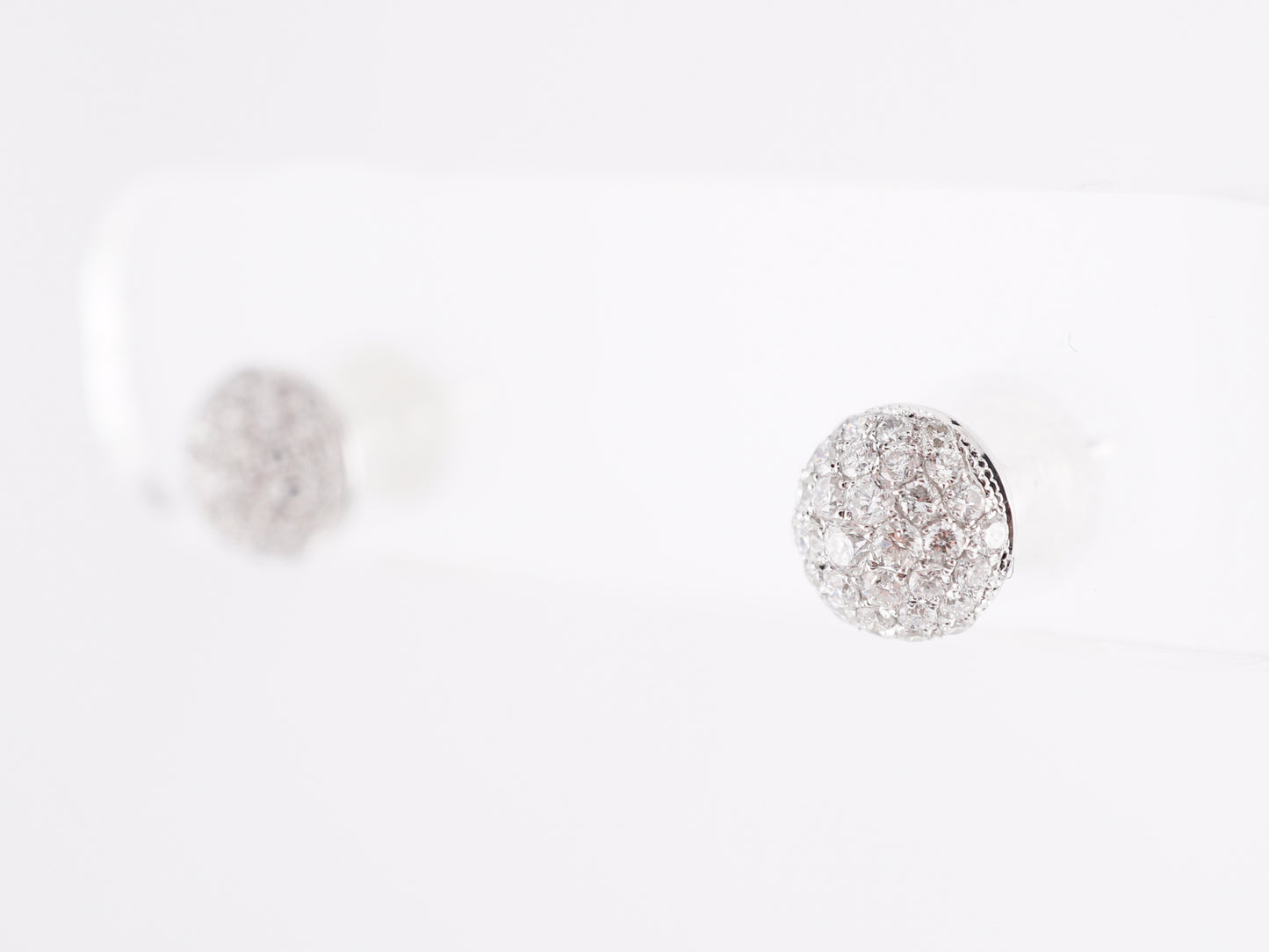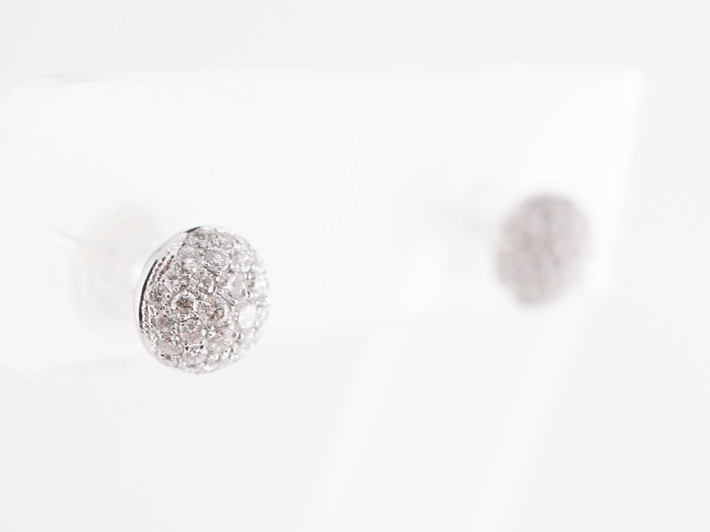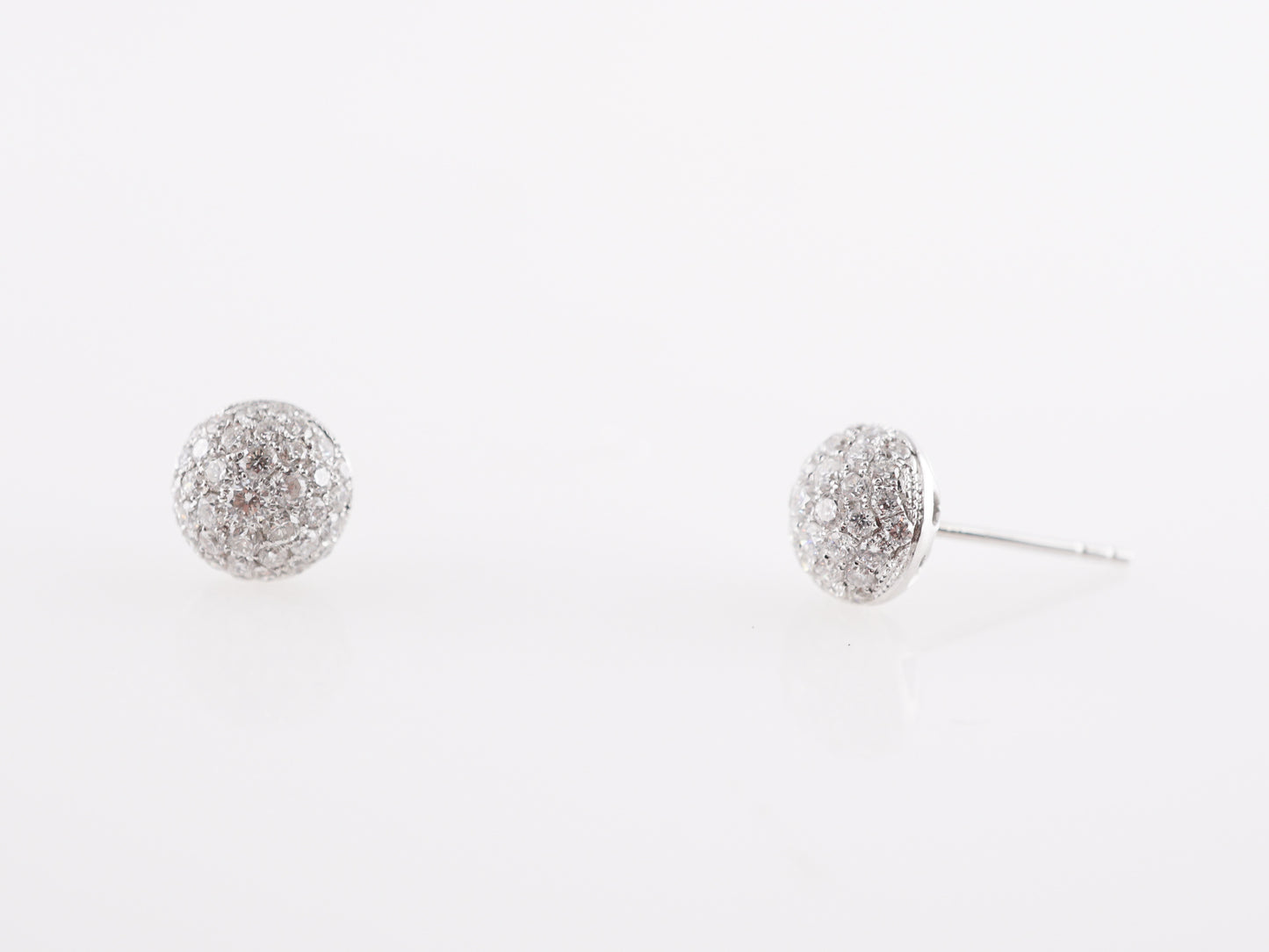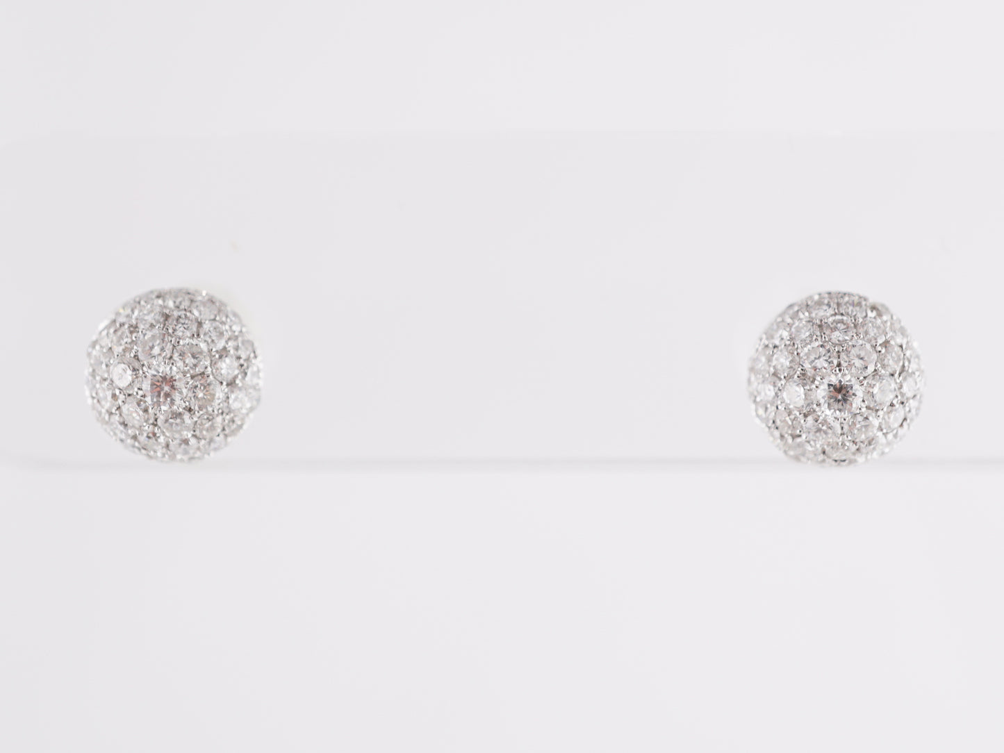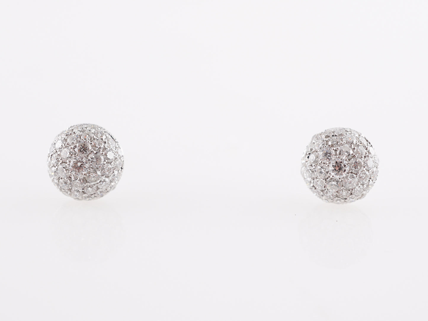 3.20 Cluster Diamond Earrings in 18k White Gold. These stud earrings feature a total of 3.20 carat round brilliant cut diamonds in 18k white gold. Both cluster studs feature a total of eighty .04 carat genuine natural diamonds in a half sphere shape. Fitting in elegant pave form, these studs are a true treasure!