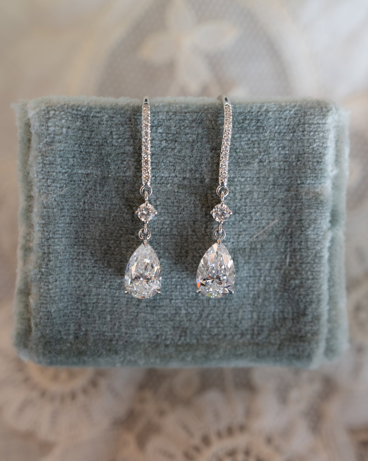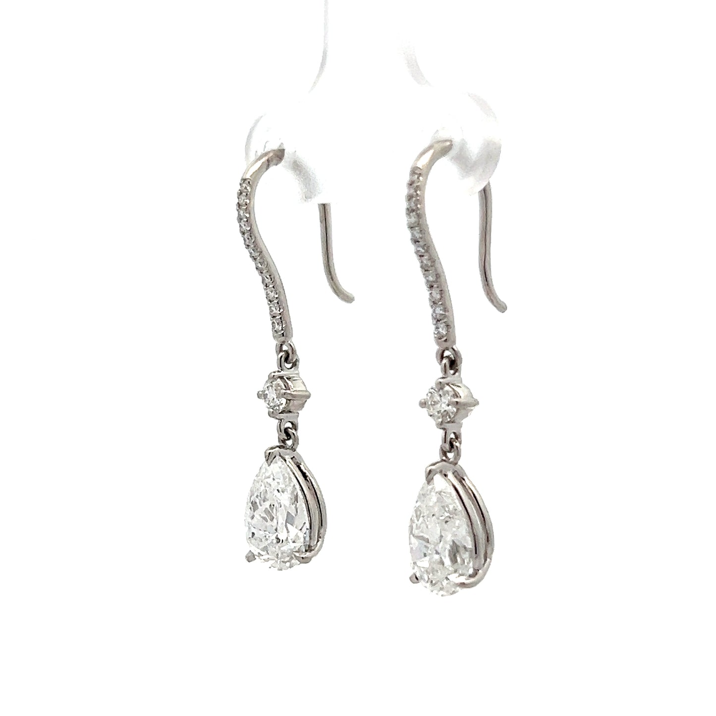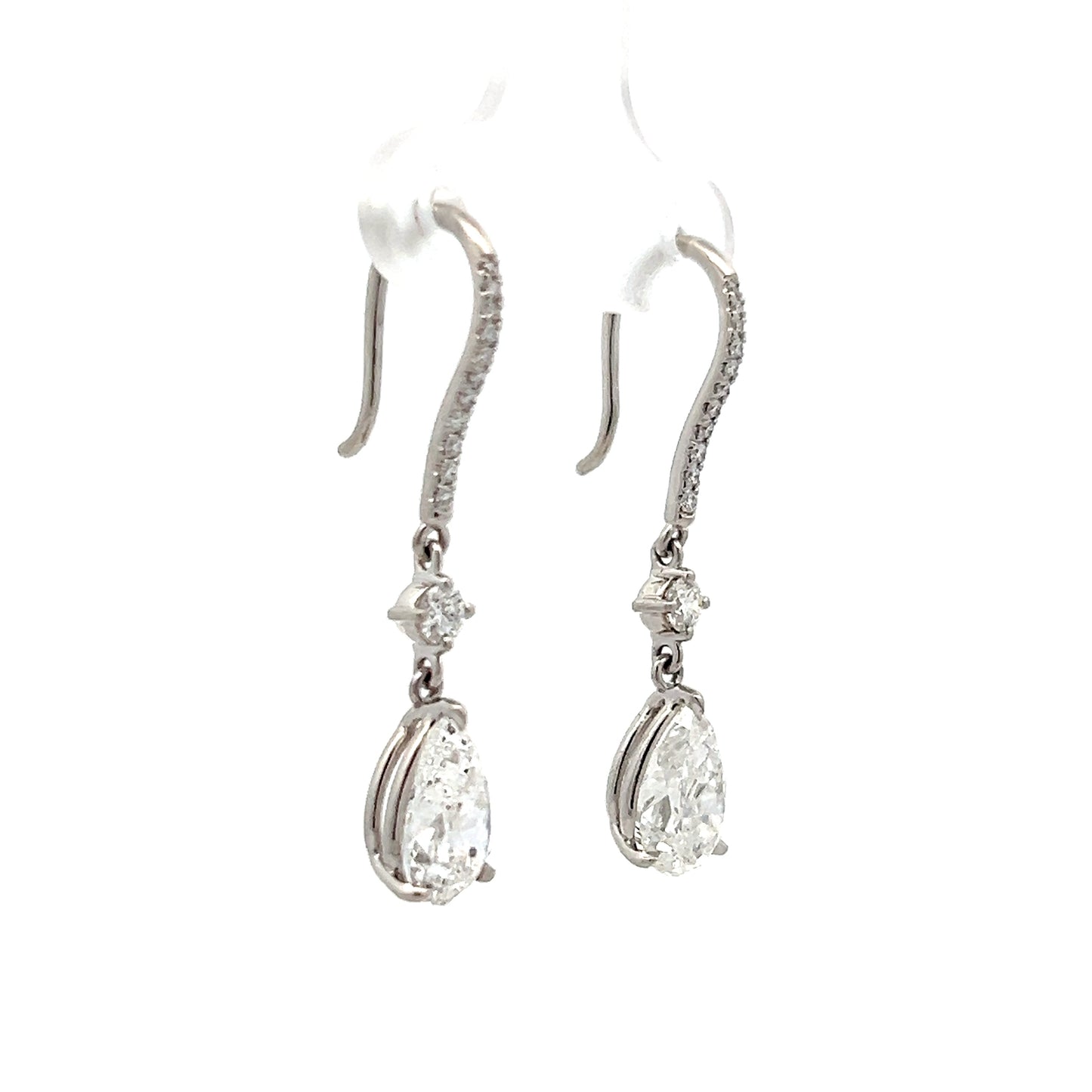 3.28 Pear Cut Diamond Drop Earrings in Platinum