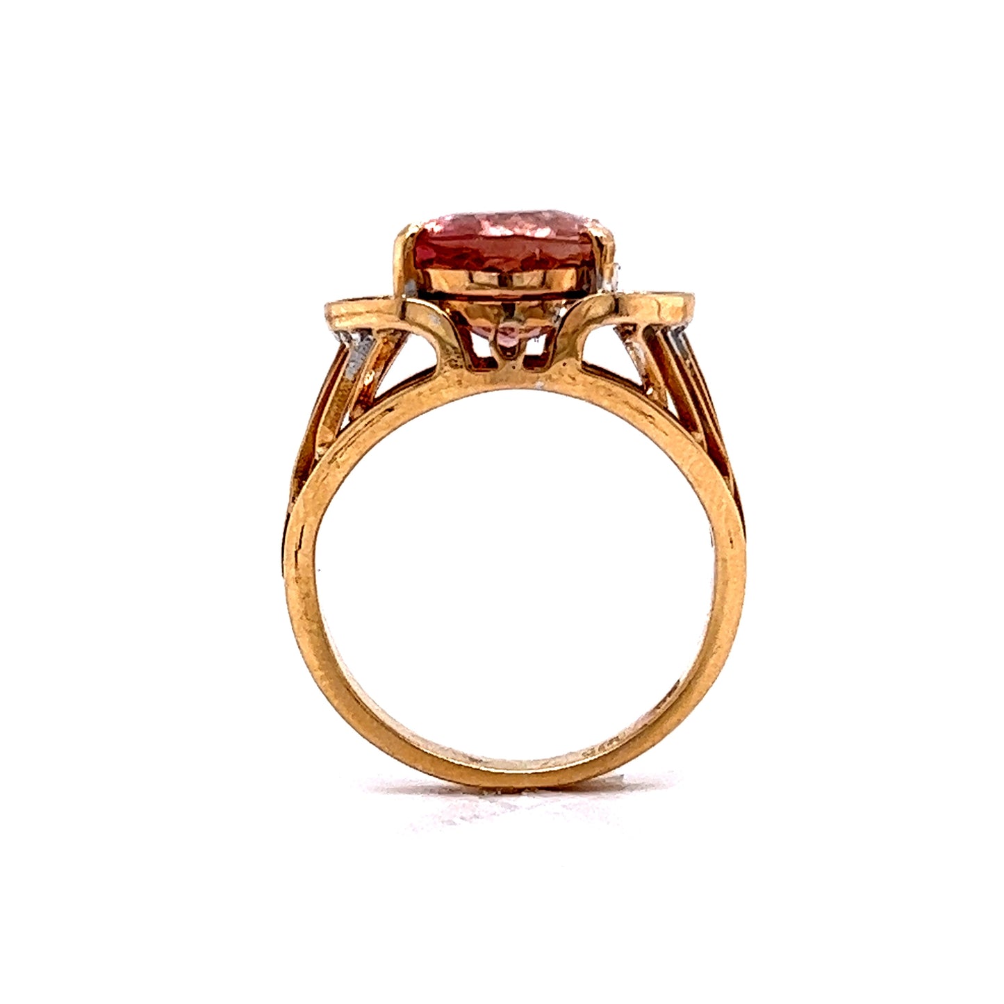 Vintage Pink Tourmaline & Diamond Cocktail Ring in 14k Yellow Gold