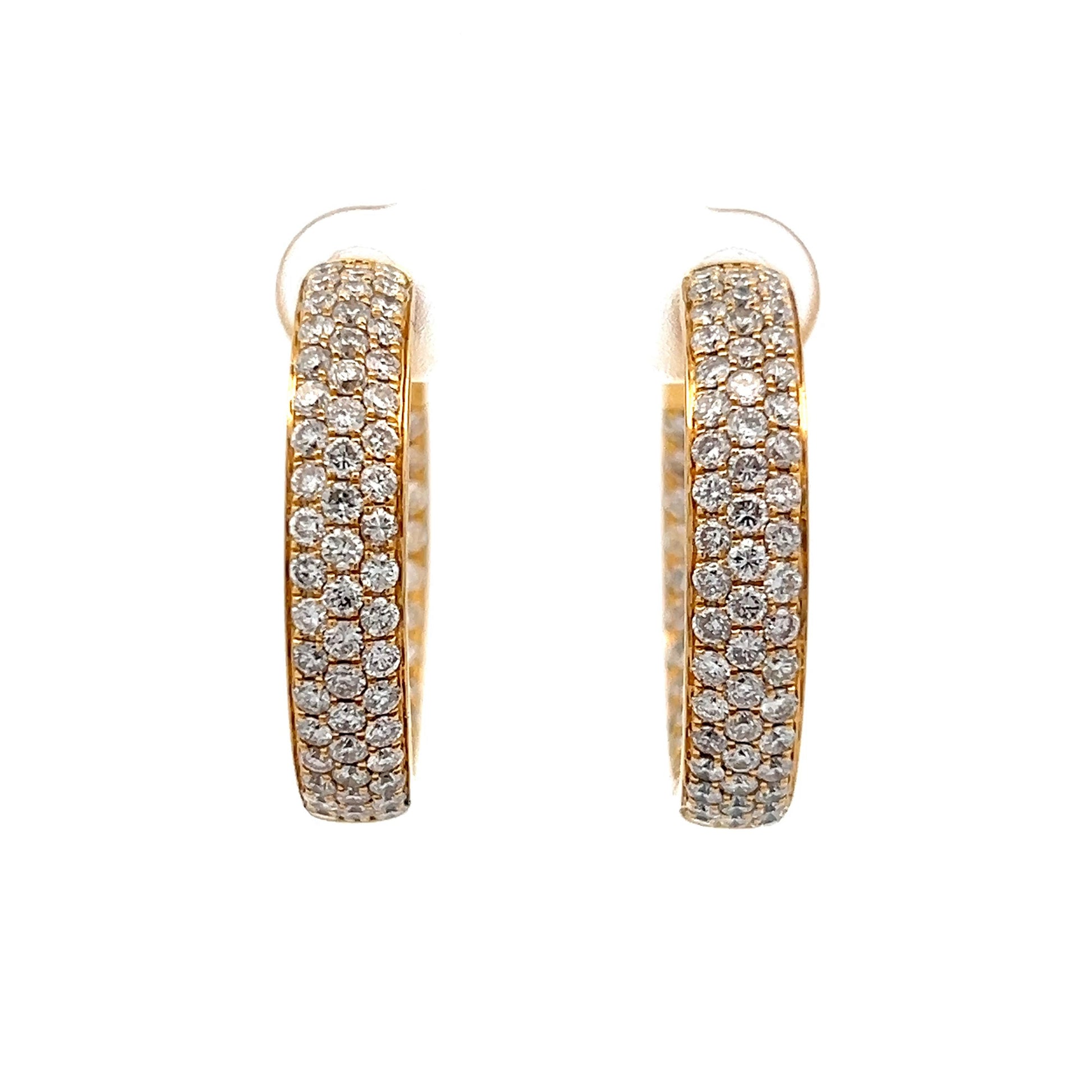 3.54 Pave Diamond Hoop Earrings in 18k Yellow Gold