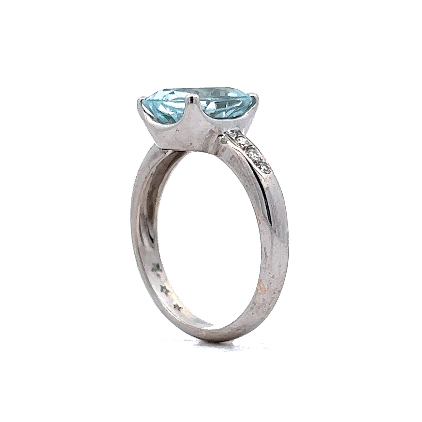 3.56 Aquamarine & Diamond Cocktail Ring in 18k White Gold