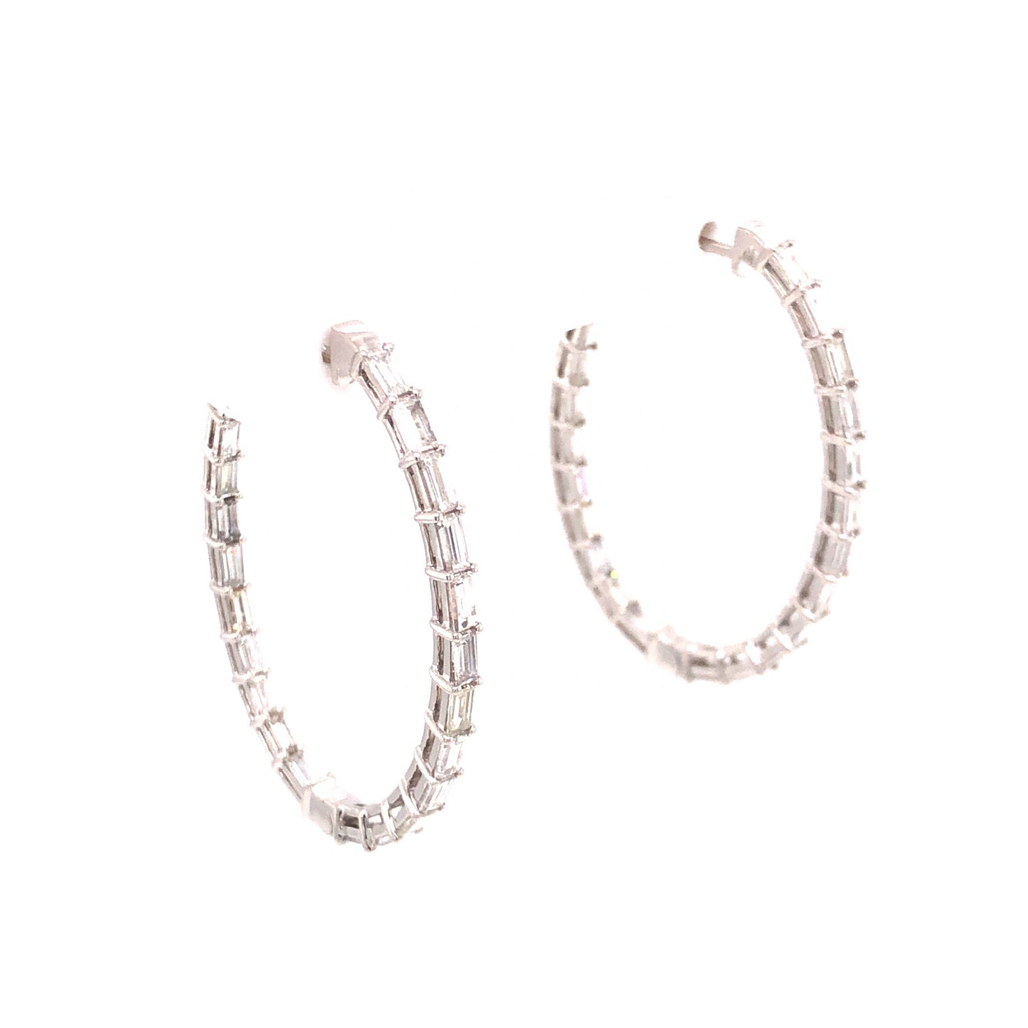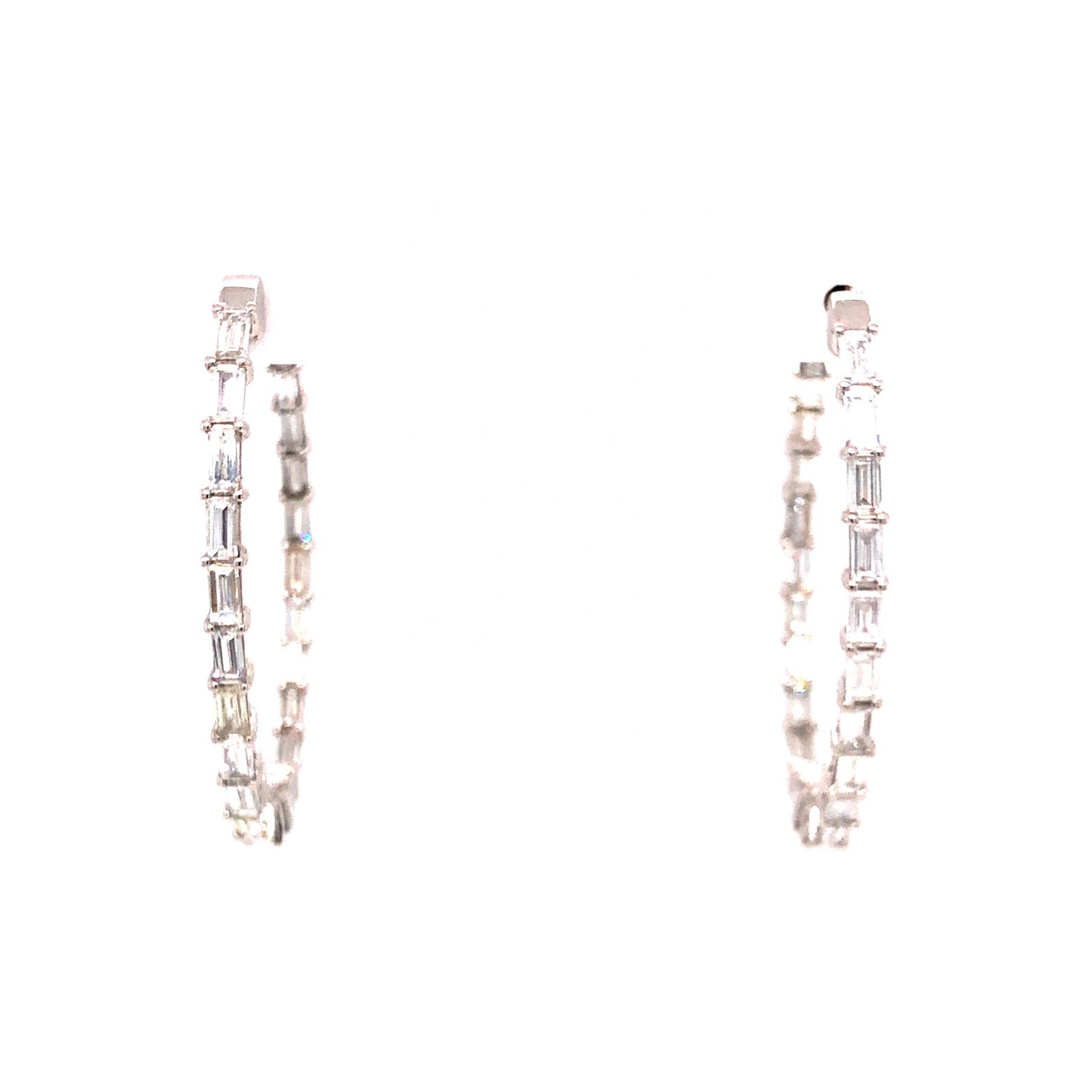 3.62 Baguette Cut Diamond Hoop Earrings in 18k White Gold