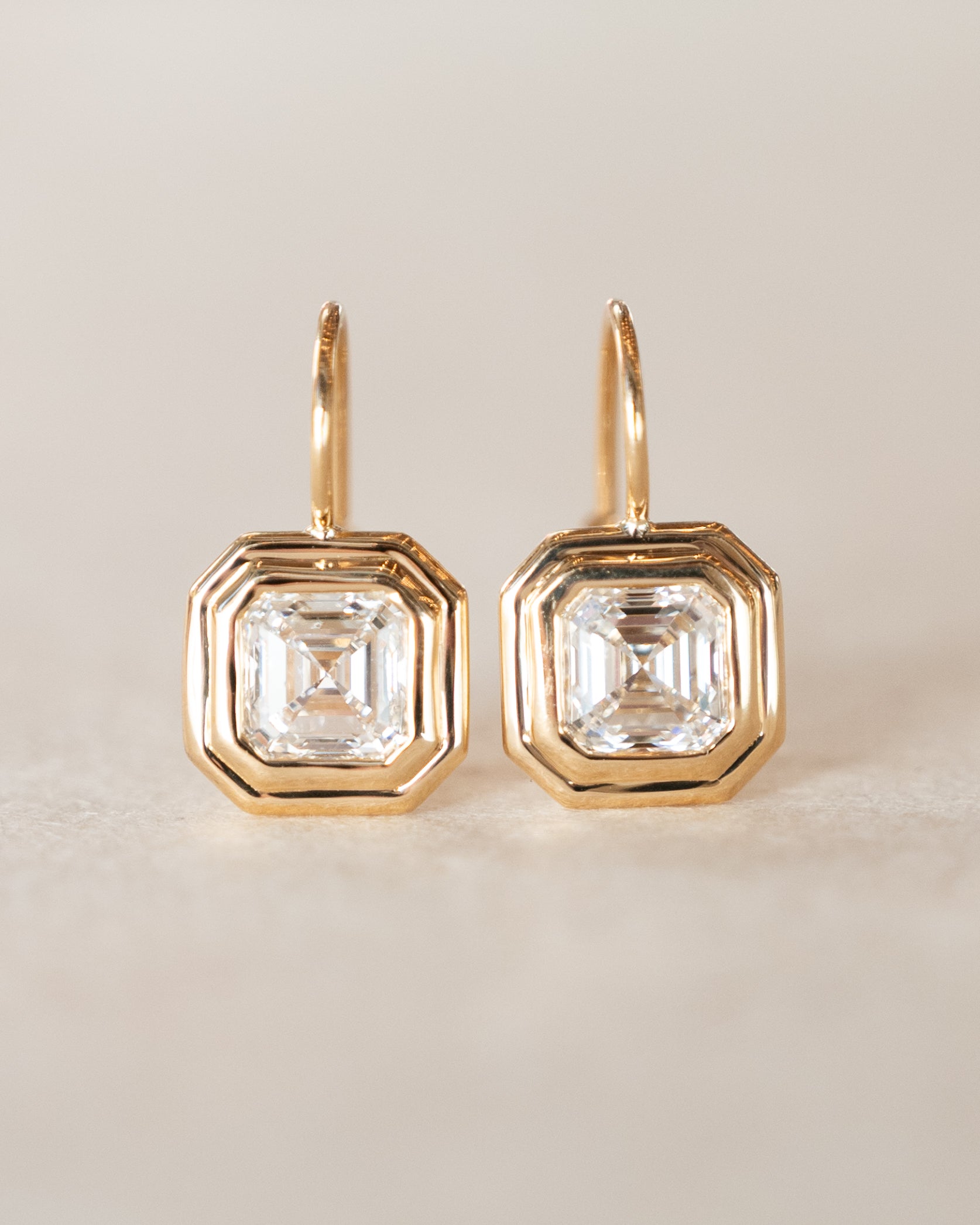 3 Carat Asscher Diamond Drop Earrings 18k Yellow Gold