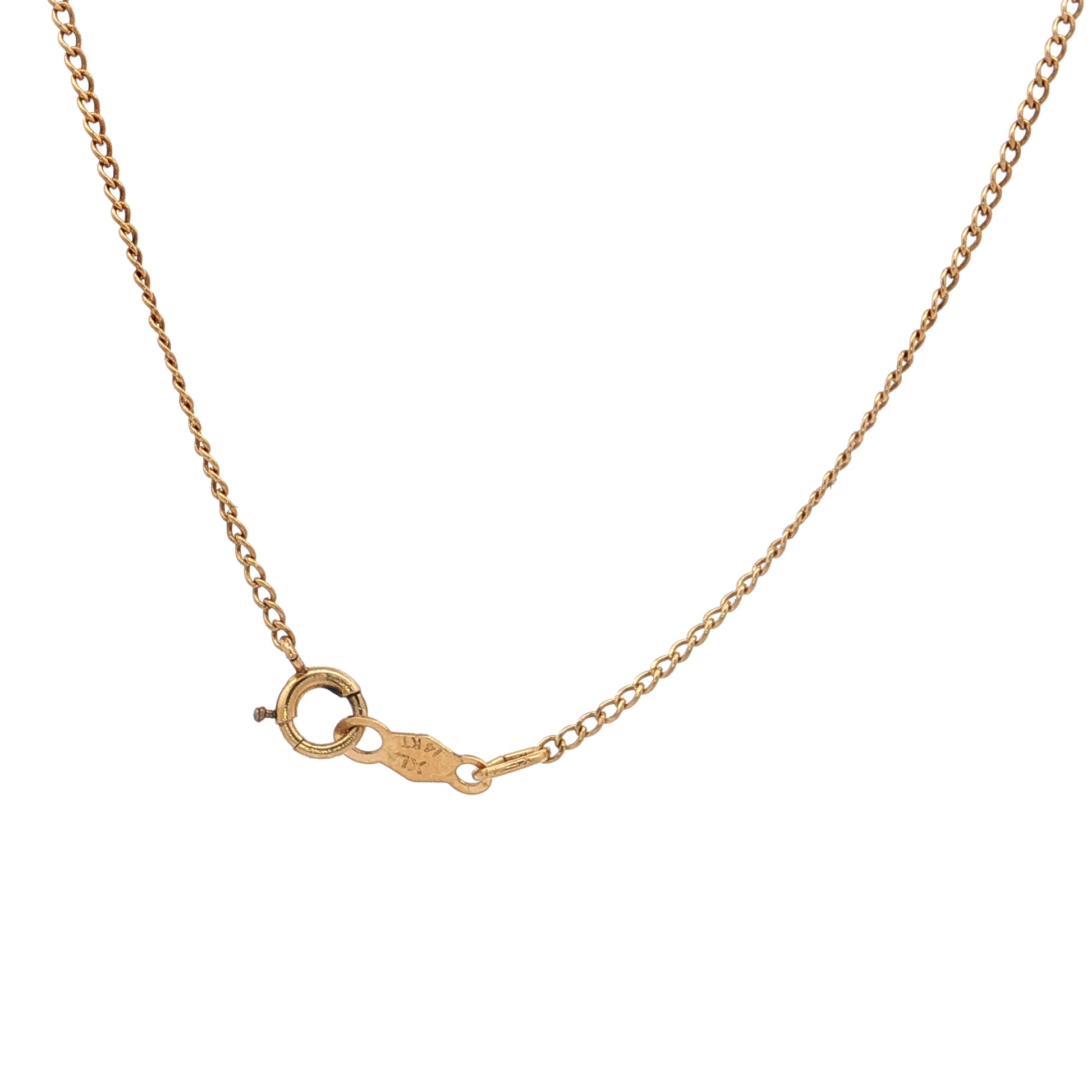 The filigree metalwork shows the intricate openwork patterns typical of Victorian jewelry from the 1800s. The pendant measures 1.75 inches in length and hangs from a 15-inch chain that sits high on the neck.