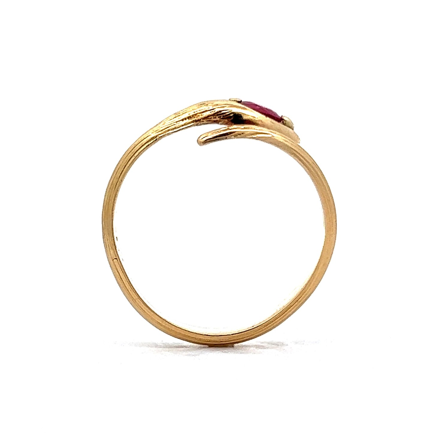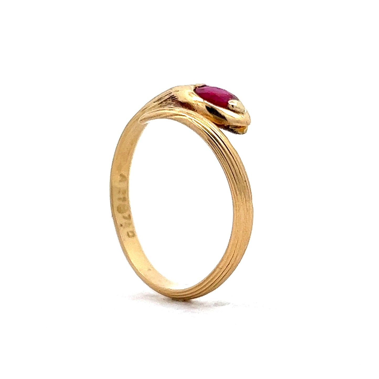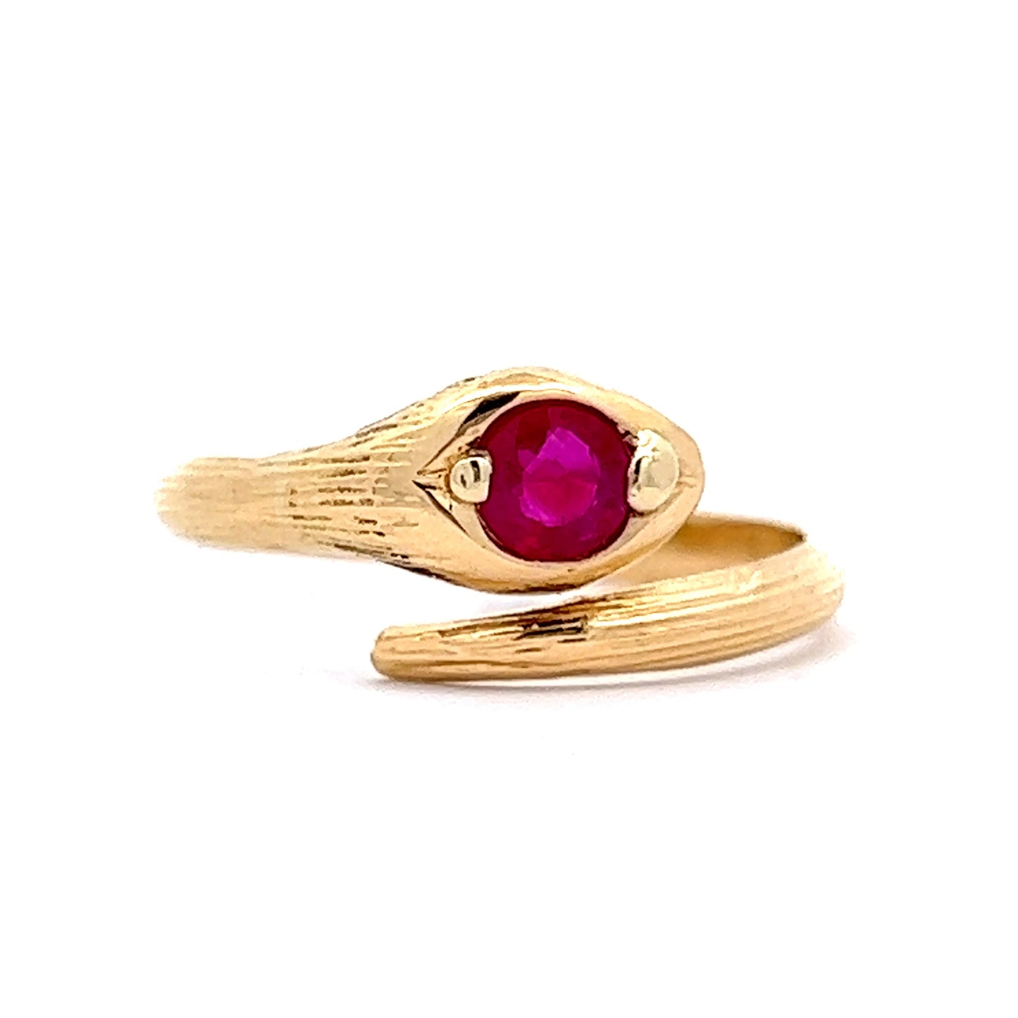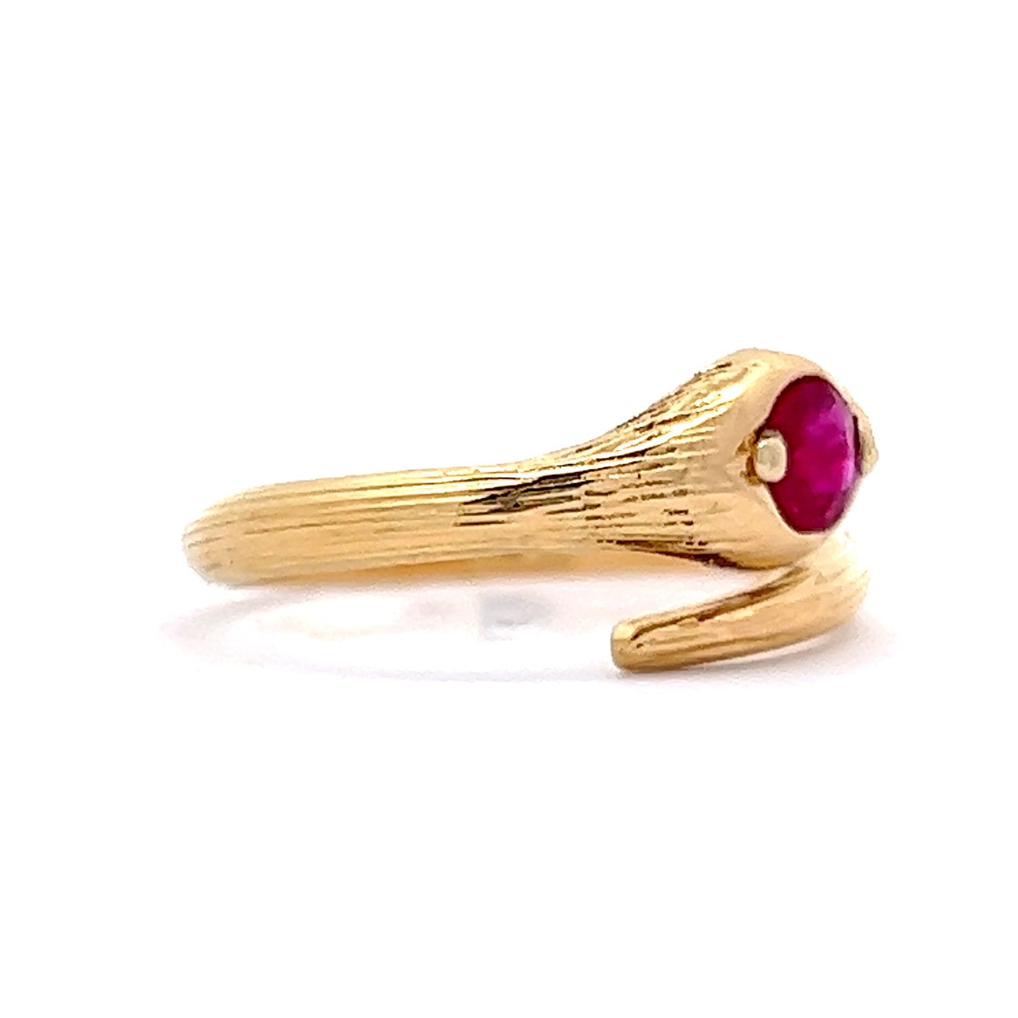 Vintage Mid-Century Ruby Snake Ring in 18k Yellow Gold
