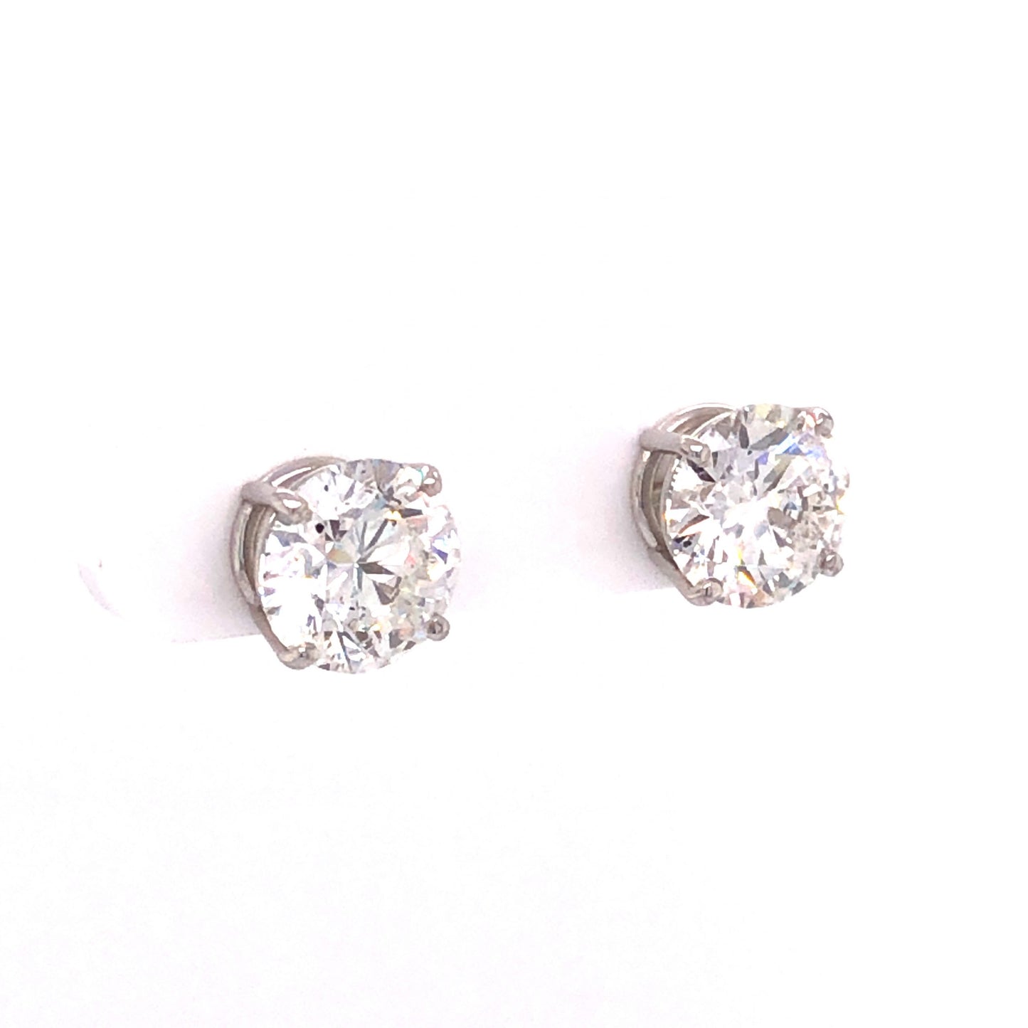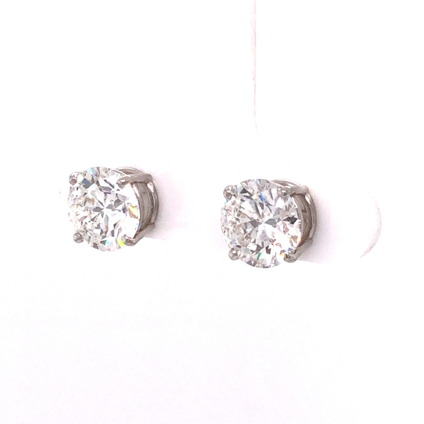4.10 GIA Diamond Stud Earrings in 14k White Gold. These classic diamond studs feature 4.10 carats of GIA-certified diamonds finished in 14 karat white gold. With a timeless elegance and facets that bring an impressive amount of fire and brilliance, these diamond studs speak for themselves. A perfect gift for any diamond lover in your life!