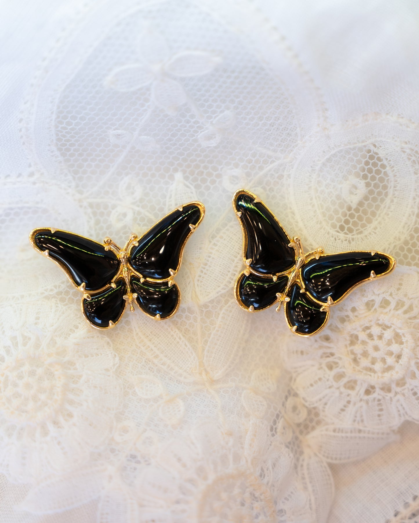 4.25 Onyx Butterfly Earrings in 18k Yellow Gold