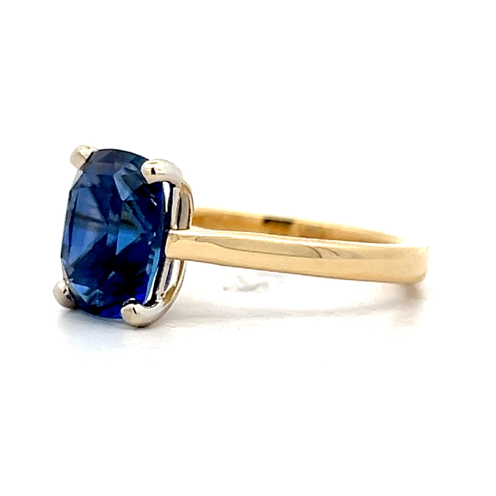 4.37 Cushion Cut Blue Sapphire Engagement Ring 18k