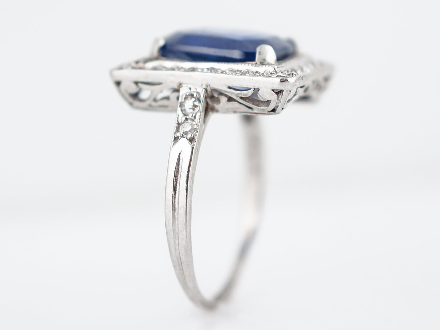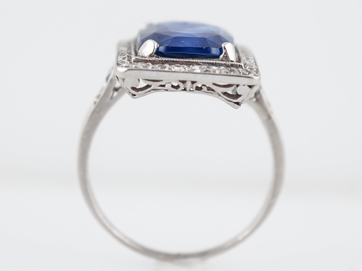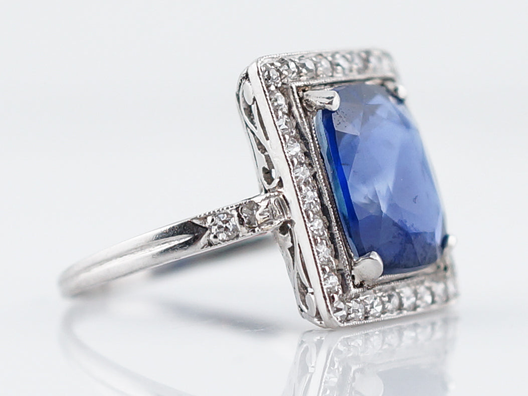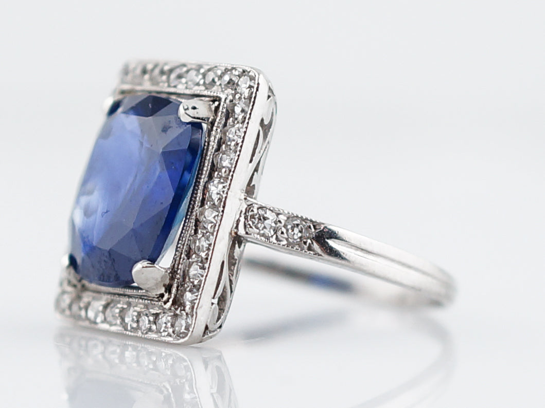 4 Carat Cushion Sapphire Engagement Ring Art Deco