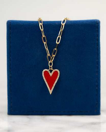 .40 Red Enamel Heart Pendant Necklace in 14k
