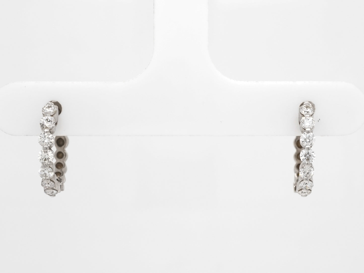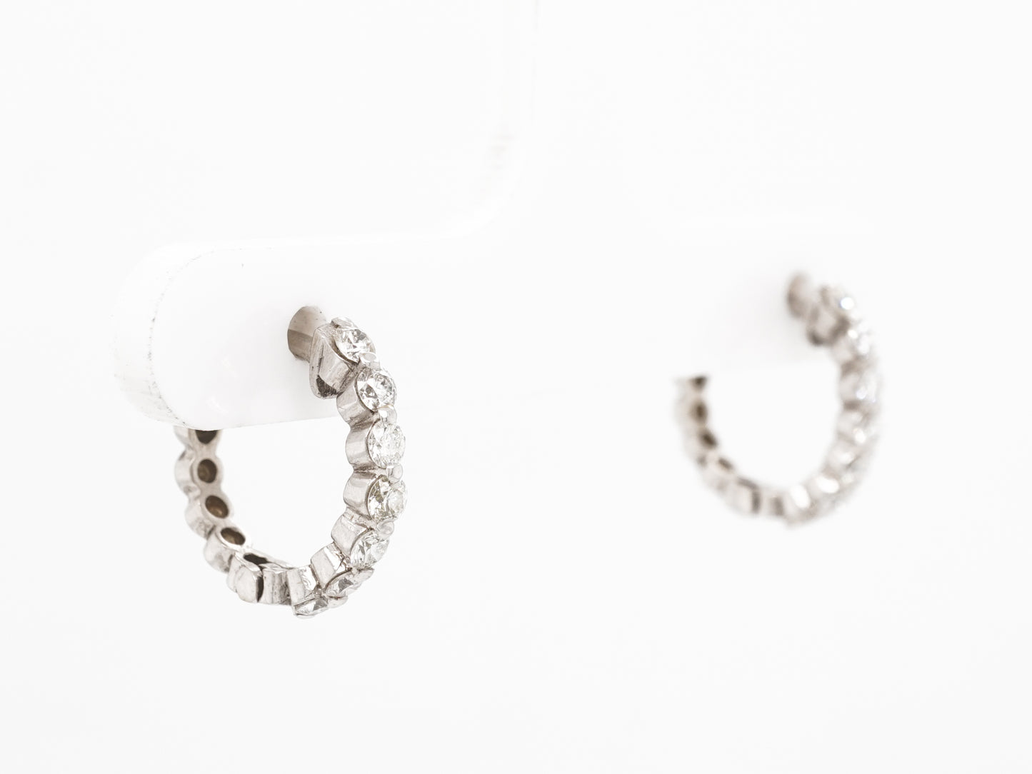 .42 Diamond Hoop Earrings in 14k White Gold. These sensible and stylish hoop earrings feature .42 carats of diamonds in 14k white gold. Measuring 13.78mm in diameter, these streamlined hoops feature fourteen .03 carat diamonds that sparkle from every angle. Add a bit of brilliance to your wardrobe and grab these diamond hoops before they’re gone!