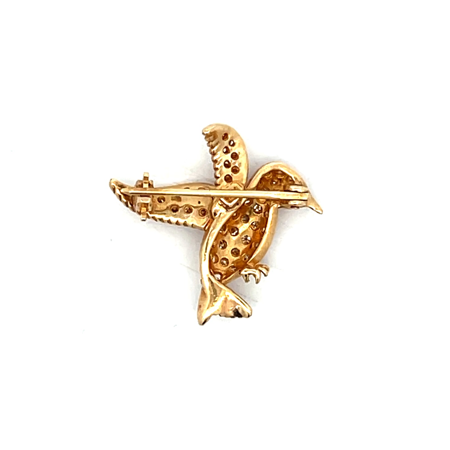 .46 Diamond Hummingbird Brooch in 14k Yellow Gold