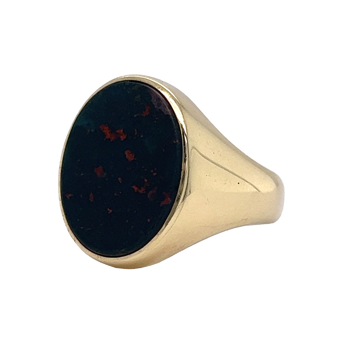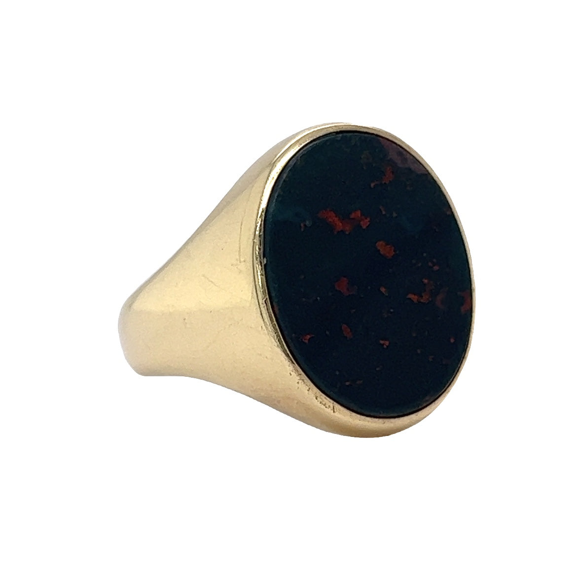 Vintage 5.05 Cabochon Blood Stone Ring in 14k Yellow Gold