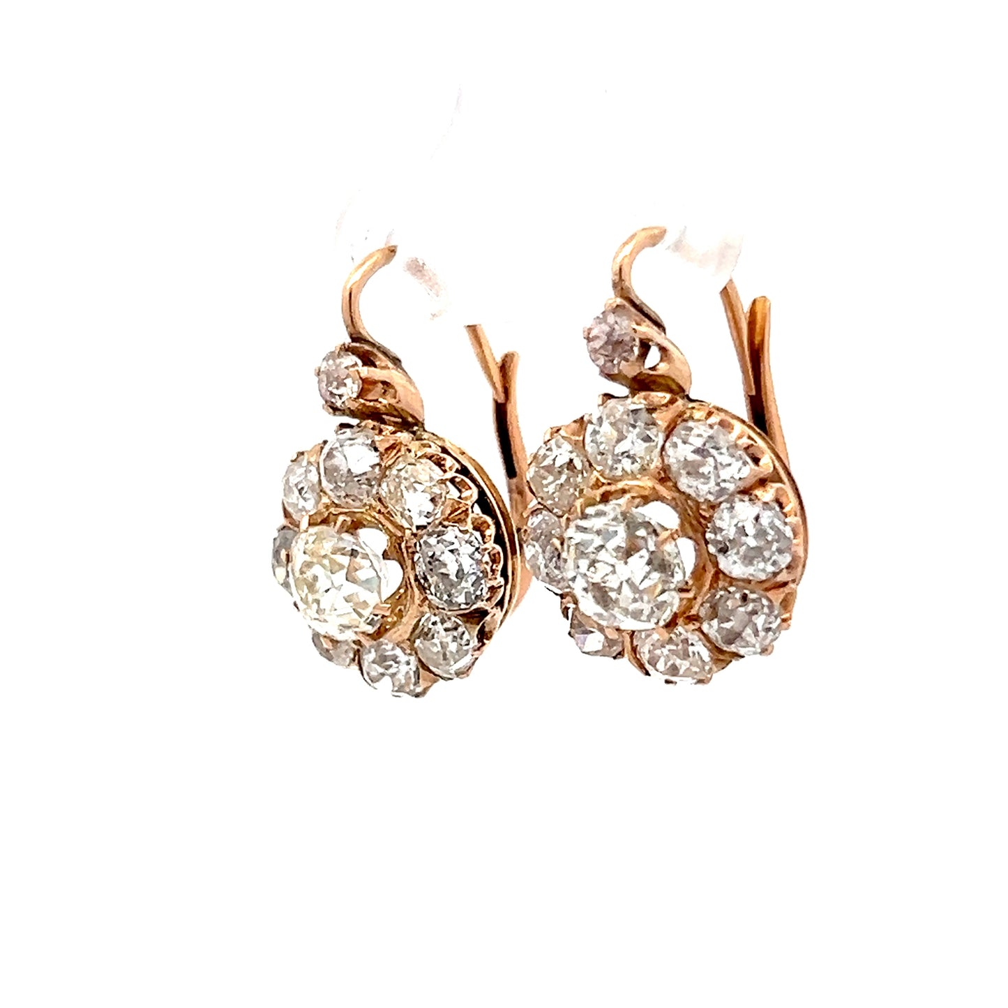 5.55 Victorian Old Mine Cut Diamond Earrings in 14k