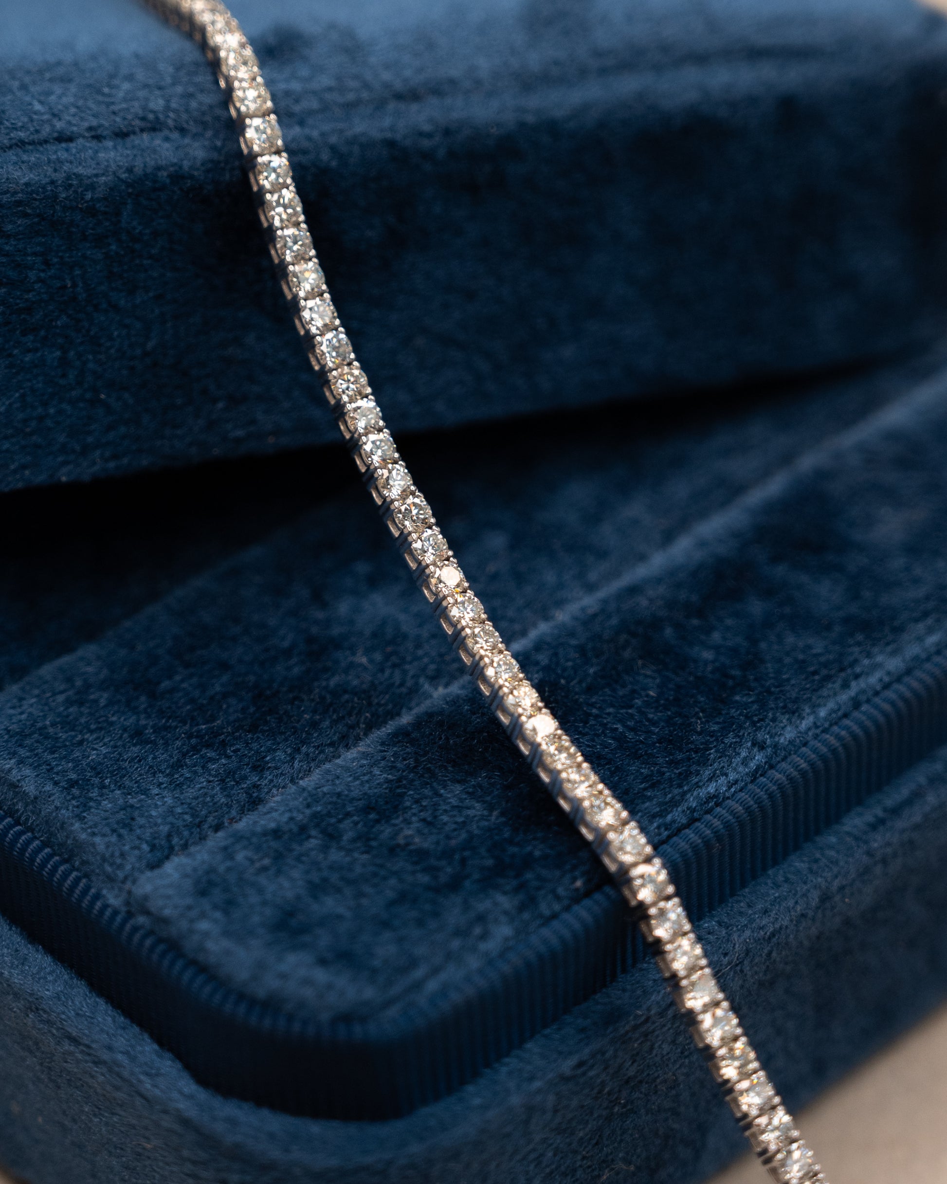 At 7 inches long, the bracelet fits most wrists comfortably without being too loose or tight. The four-prong setting style allows light to enter the diamonds from multiple angles while keeping them secure for everyday wear.
