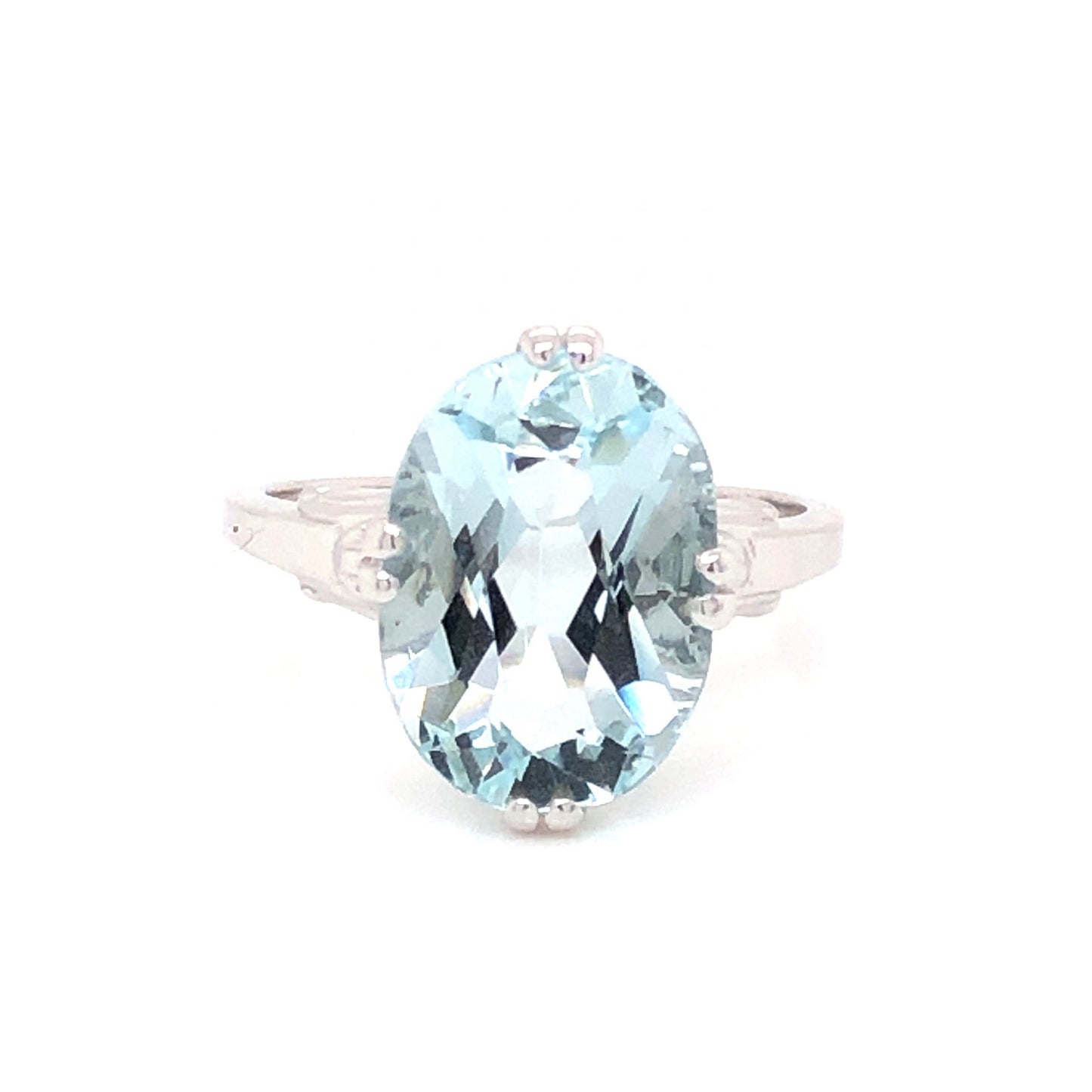 5 Carat Mid-Century Oval Cut Aquamarine Ring in 14k White Gold