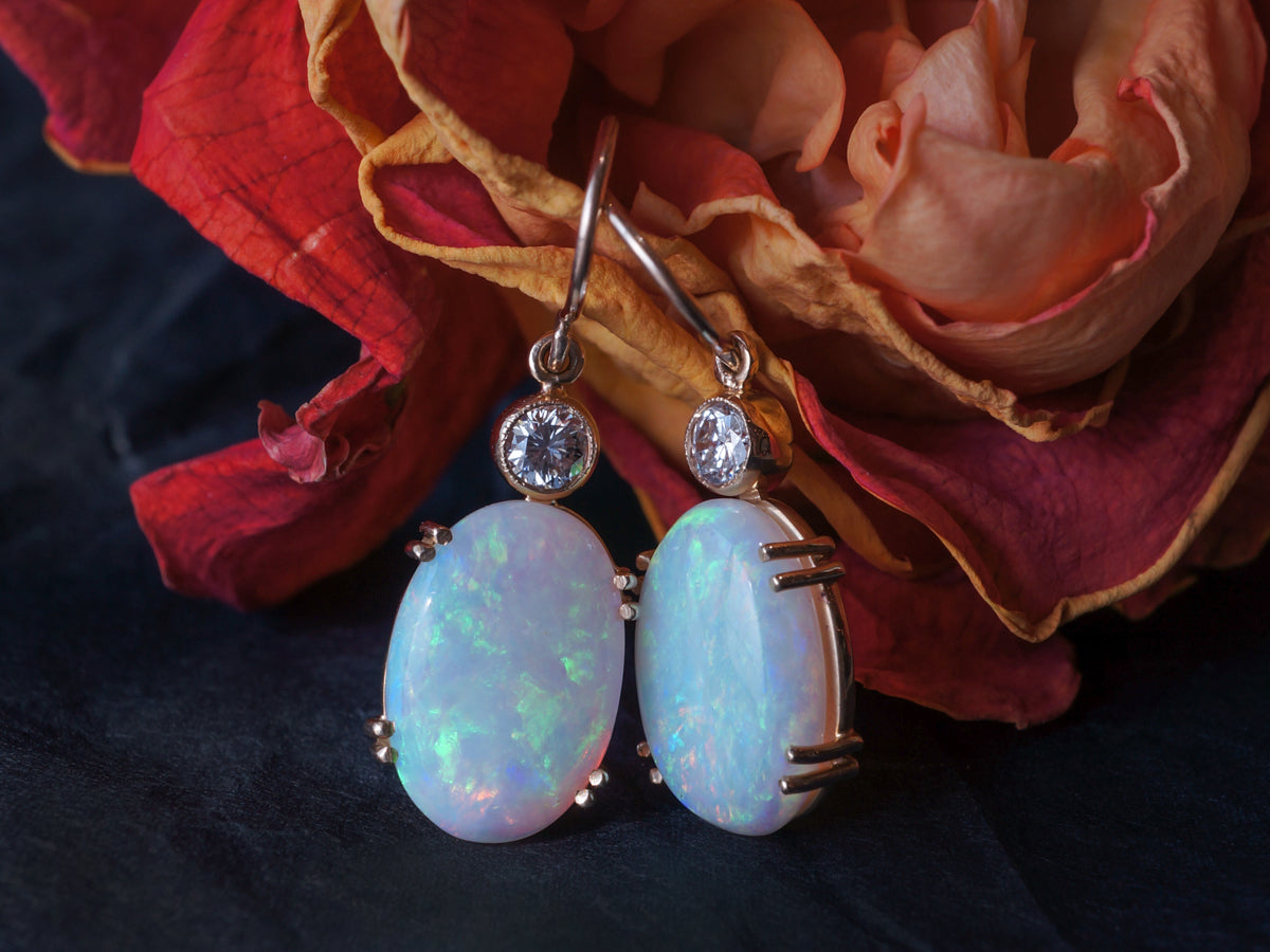 5 Carat Opal & Diamond Earrings in Yellow Gold