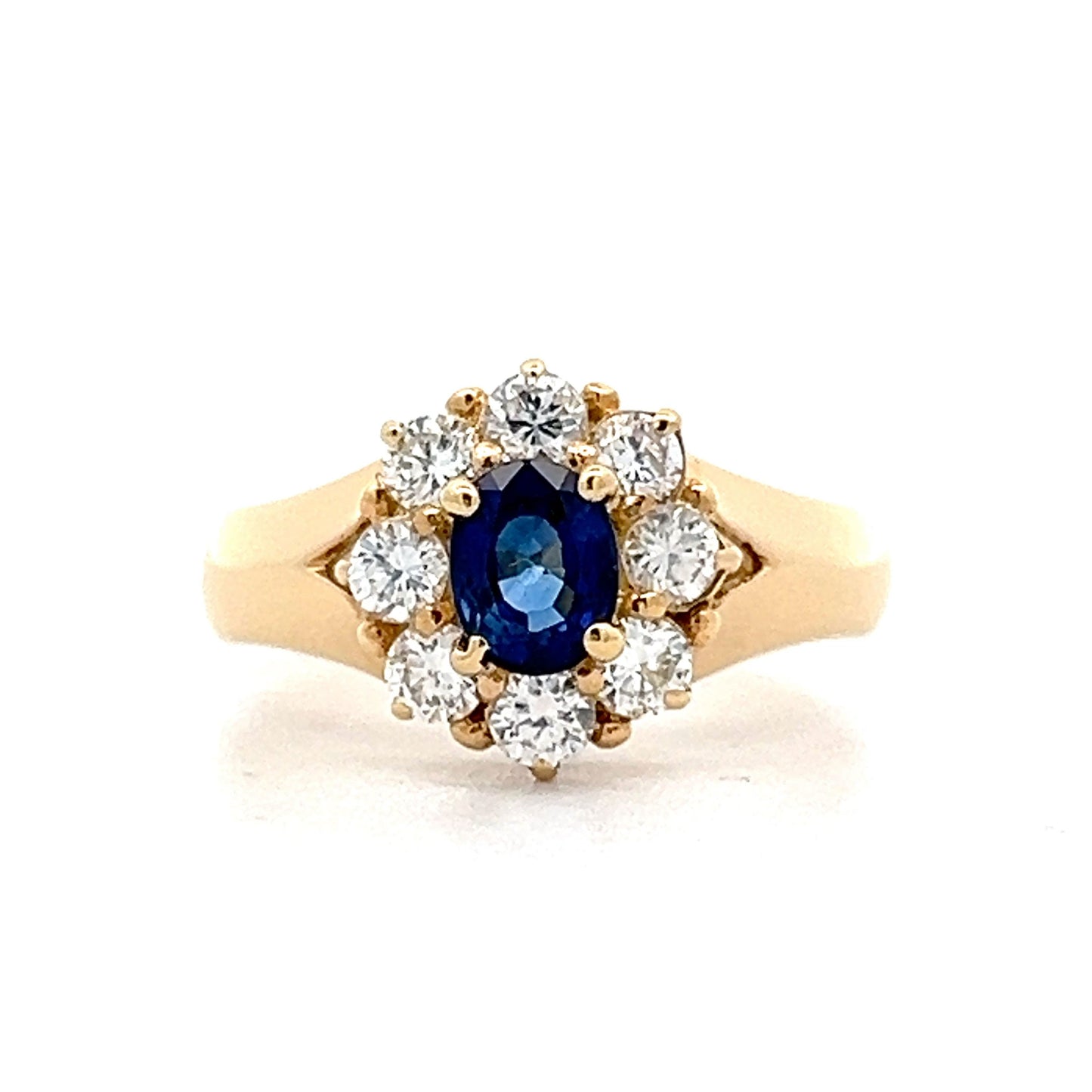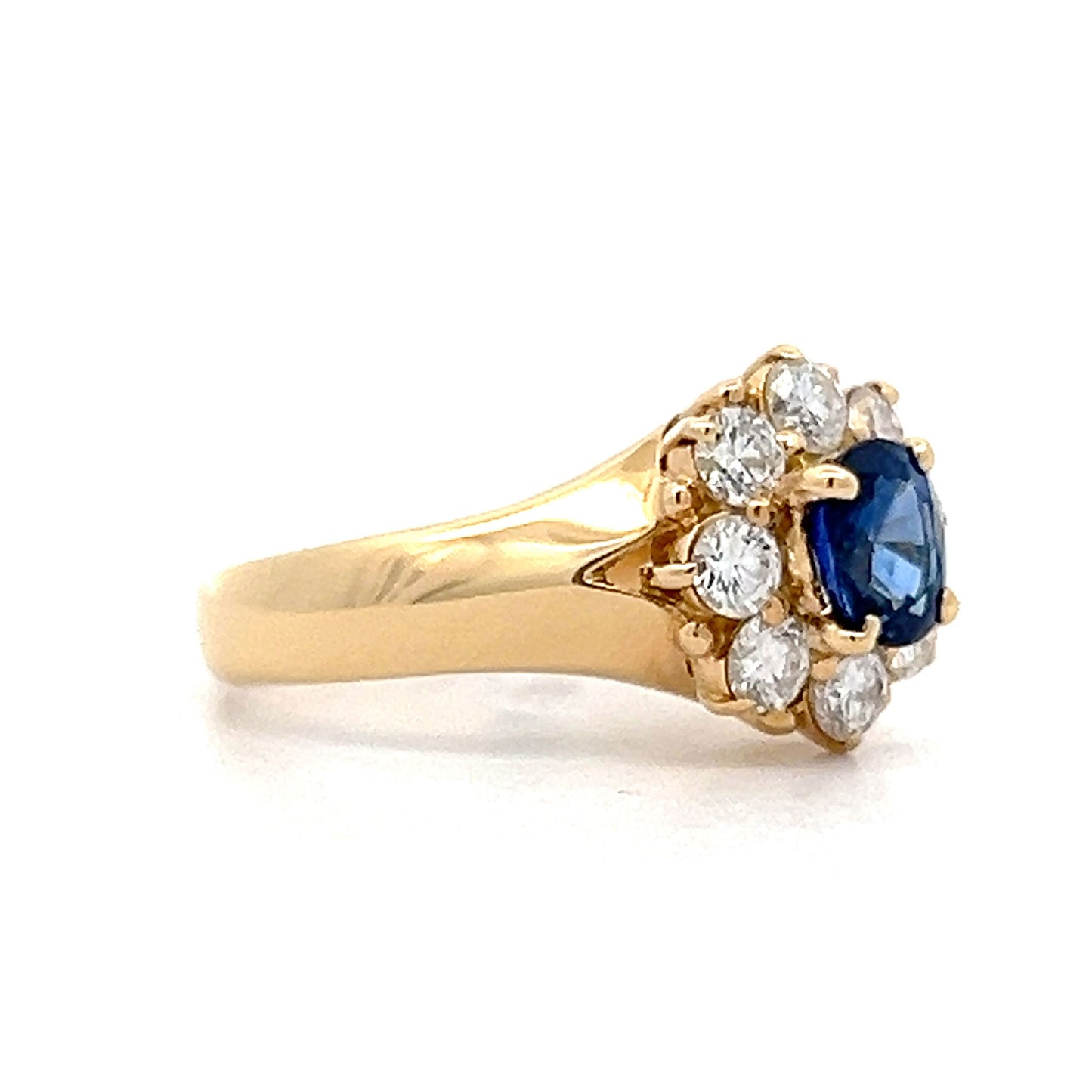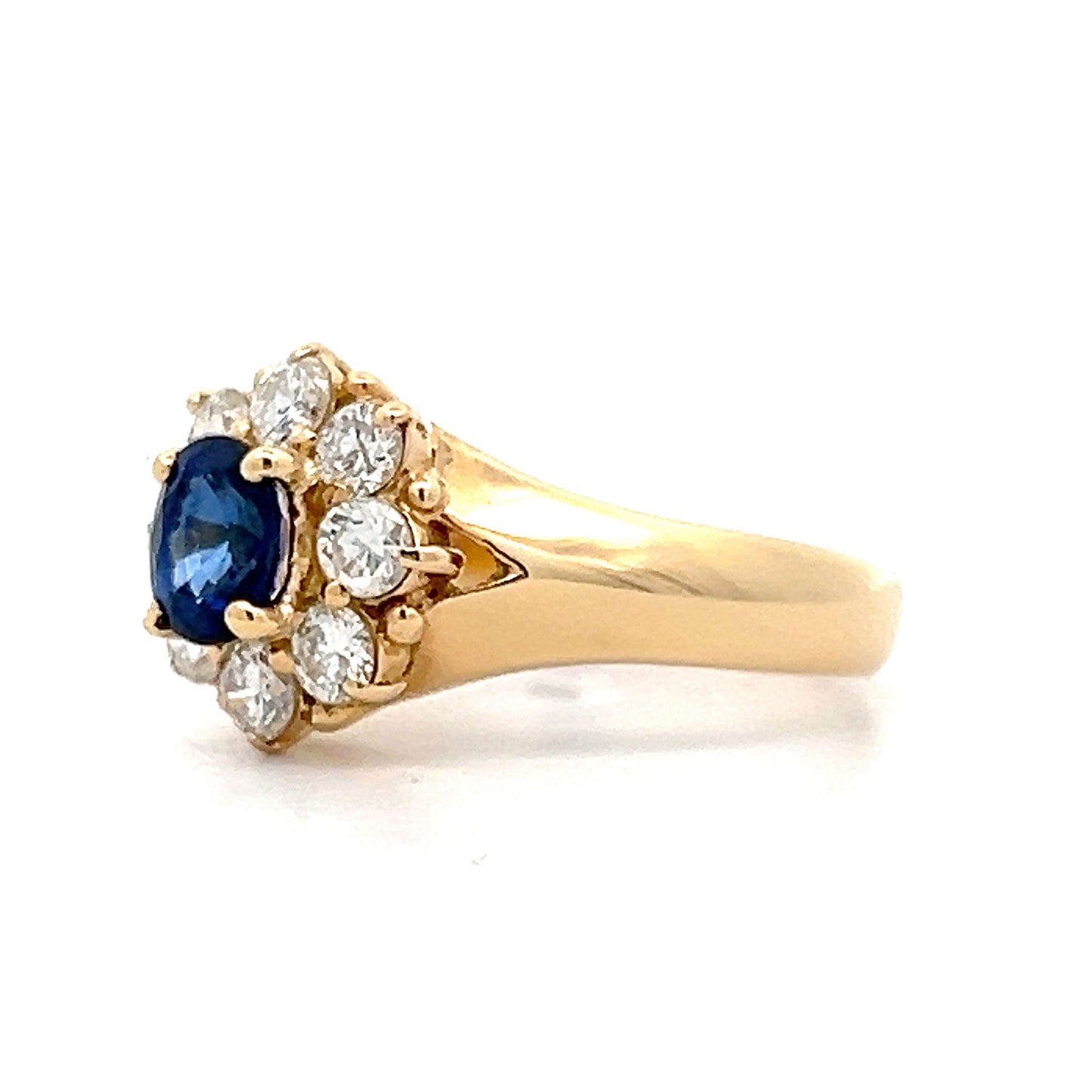 .50 Oval Sapphire & Diamond Cluster Ring in 18k Yellow Gold