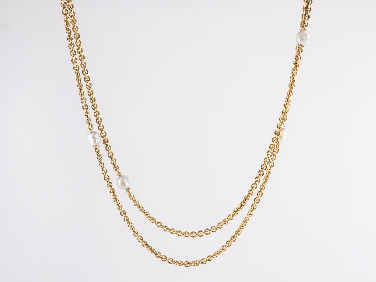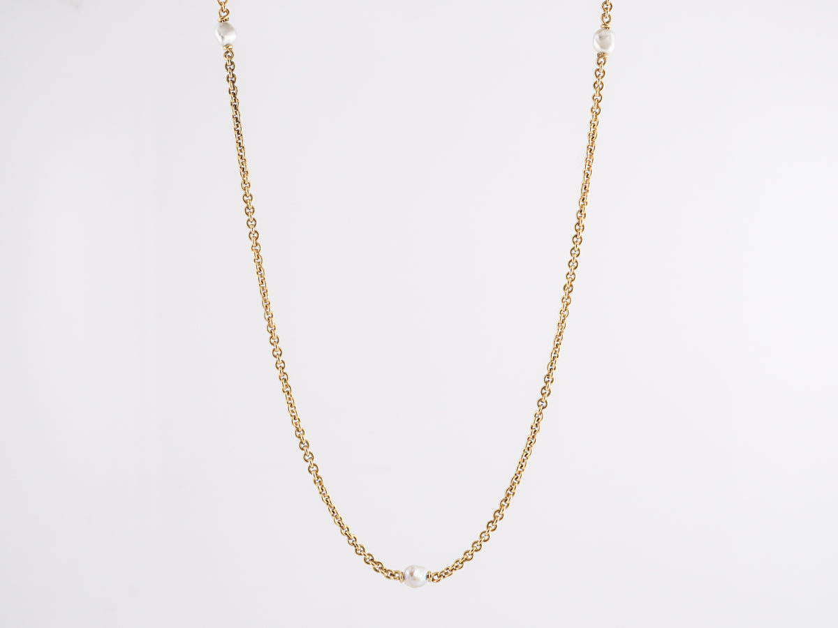 52 Inch Victorian Chain Necklace with Pearls in 18k