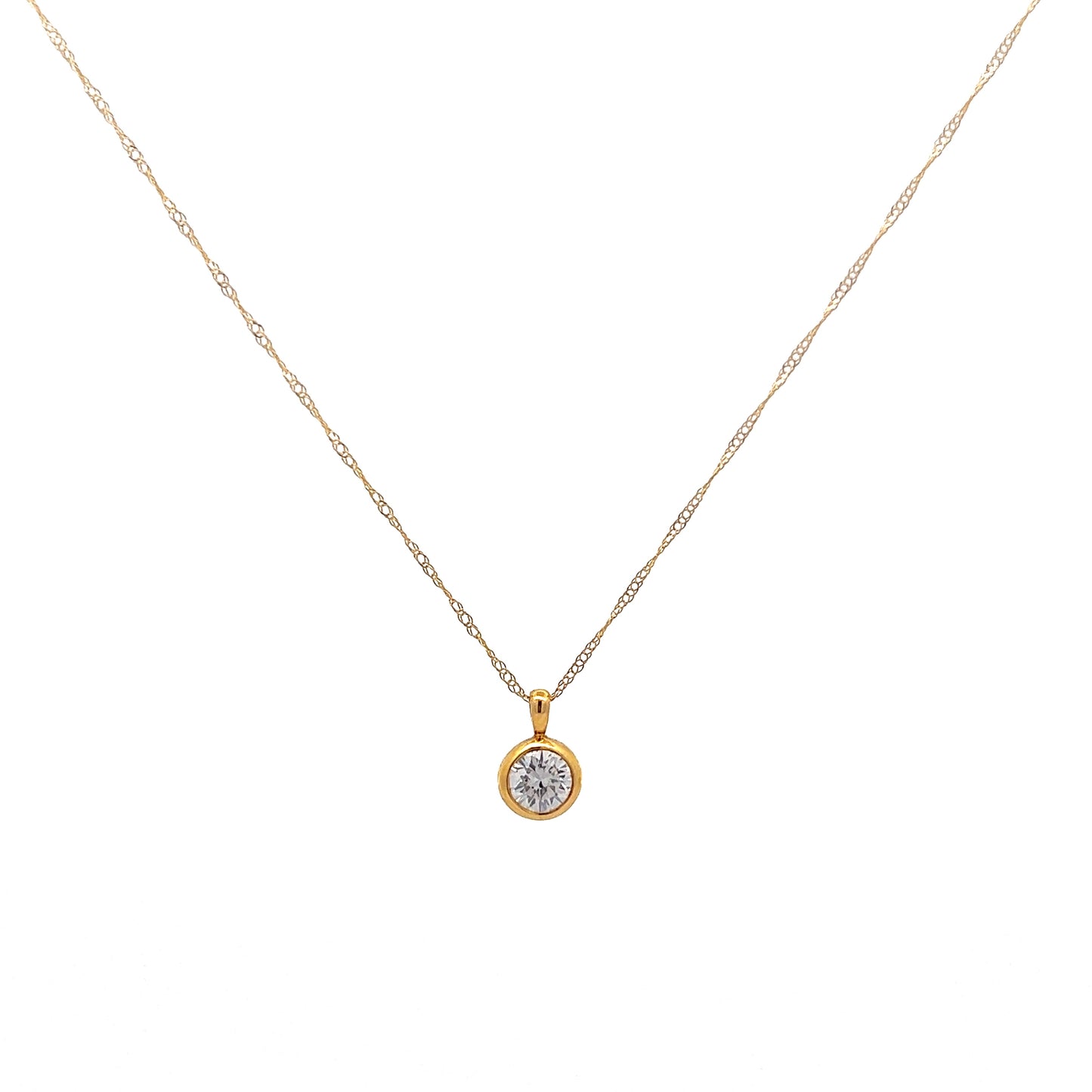 An eye-catching round brilliant diamond is the focal point of the pendant, with a total carat weight of .53 carats. The diamond is bezel set for security and with its excellent color and clarity grades, sparkles from every angle. A great every day piece that is the staple of any good jewelry collection.