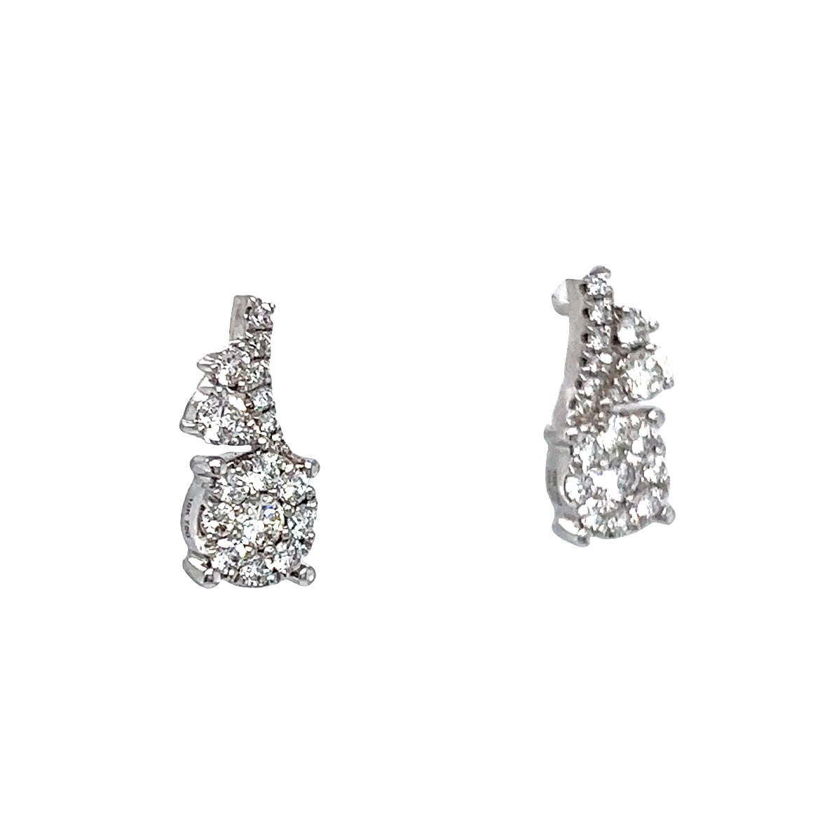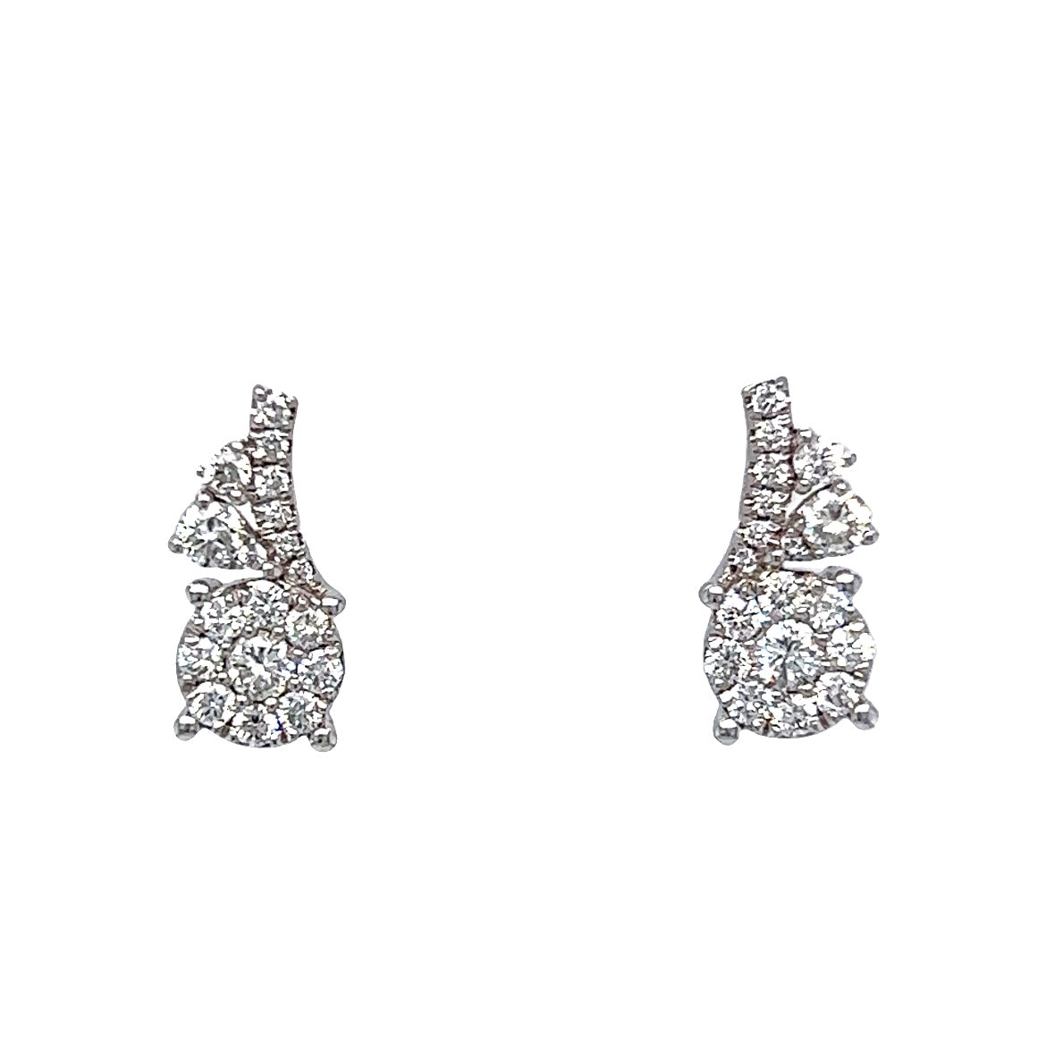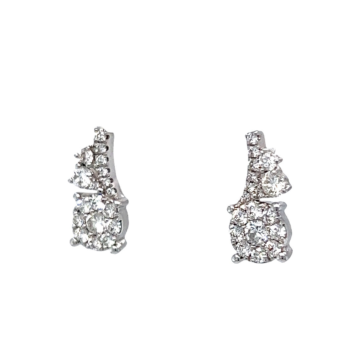 .57 Diamond Cluster Earrings in 18k White Gold. These modern stud earrings feature .57 carats of diamonds finished in 18 karat white gold. Four (4) .06 carat diamonds and thirty-four (34) .01 carat diamonds are clustered into an artful shape. The diamonds are all near colorless and brilliant, finished in polished 18k white gold. Petite and lightweight, these diamond studs are versatile enough to wear every day for any occasion!