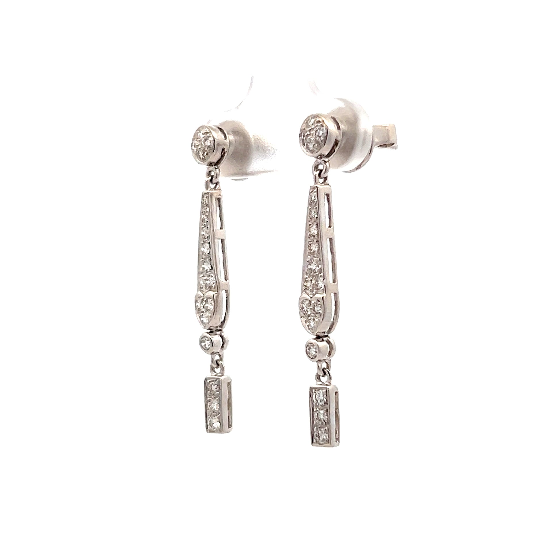 .57 Diamond Geometric Drop Earrings 18k White Gold